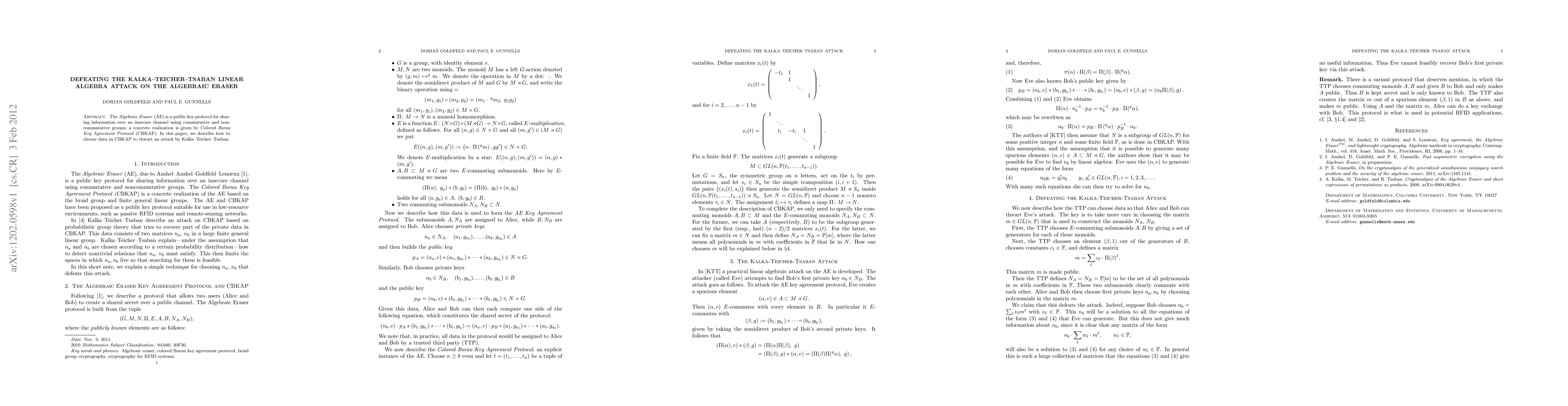 The Algebraic Eraser (AE) is a public key protocol for sharing information over an insecure channel using commutative and noncommutative groups; a concrete realization is given by Colored Burau Key Agreement Protocol (CBKAP). In this paper, we describe how to choose data in CBKAP to thwart an attack by Kalka--Teicher--Tsaban.