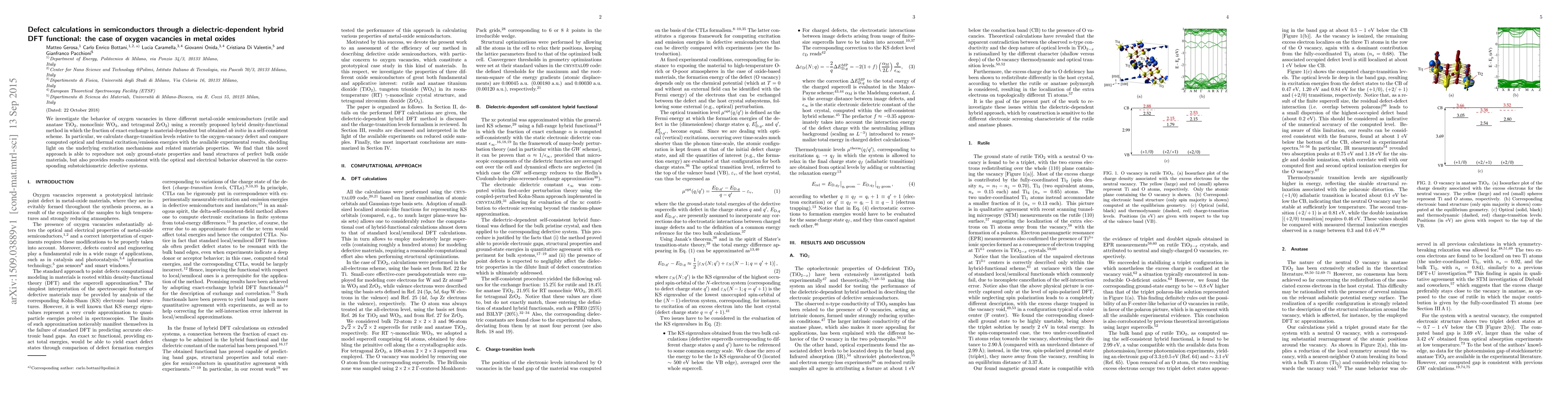 This research employs a new hybrid DFT method to study oxygen vacancies in TiO2, WO3, and ZrO2, successfully reproducing both ground-state properties and defect-related optical/electrical behaviors, highlighting the method's potential for accurate defect calculations in semiconductors.