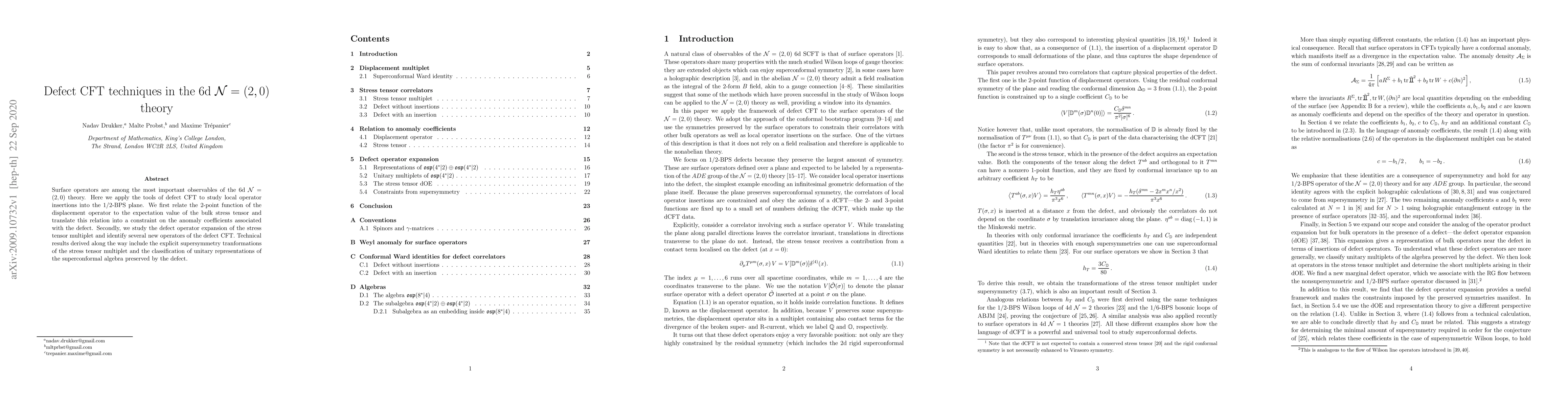 Surface operators are among the most important observables of the 6d $\mathcal{N} = (2,0)$ theory. Here we apply the tools of defect CFT to study local operator insertions into the 1/2-BPS plane. We first relate the 2-point function of the displacement operator to the expectation value of the bulk stress tensor and translate this relation into a constraint on the anomaly coefficients associated with the defect. Secondly, we study the defect operator expansion of the stress tensor multiplet and identify several new operators of the defect CFT. Technical results derived along the way include the explicit supersymmetry tranformations of the stress tensor multiplet and the classification of unitary representations of the superconformal algebra preserved by the defect.