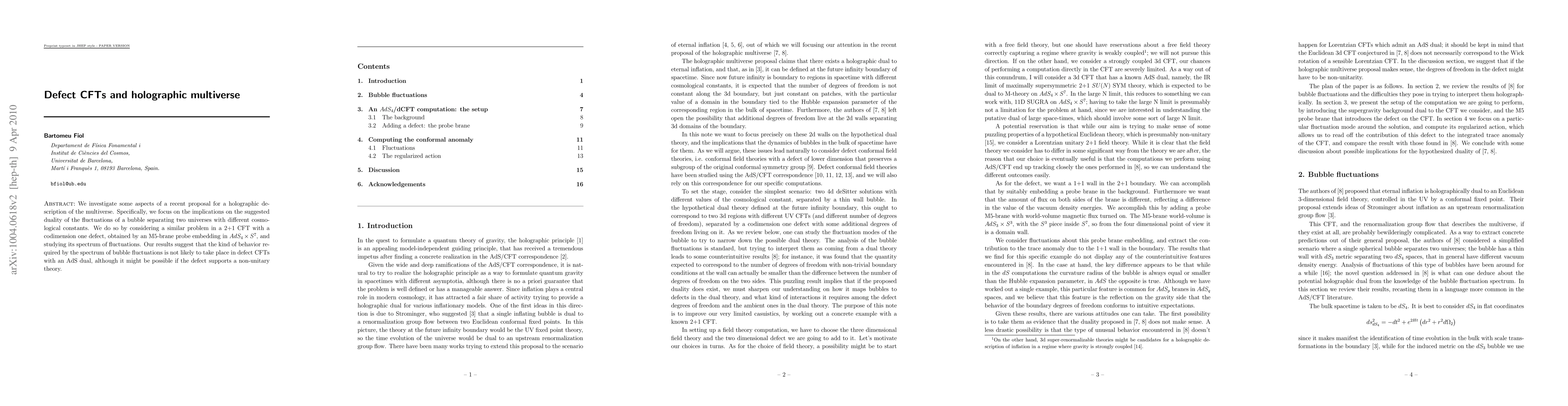 This paper explores the holographic description of a multiverse through the duality of bubble fluctuations in two universes with different cosmological constants. It finds that defect CFTs with an AdS dual are unlikely to exhibit the required spectrum for such fluctuations, though non-unitary theories at the defect might allow it.