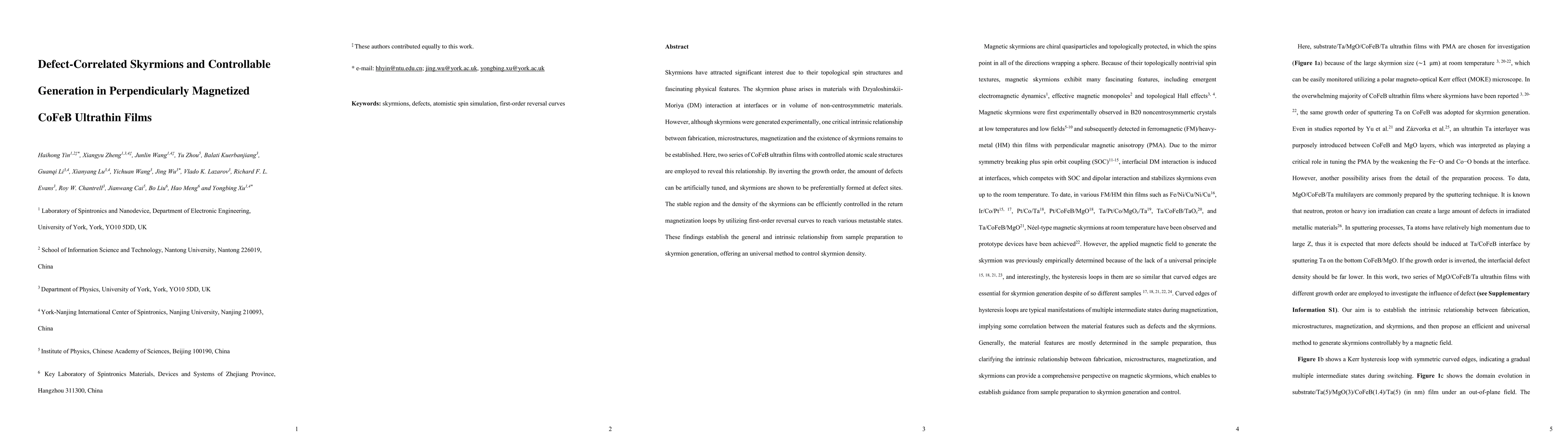 Skyrmions have attracted significant interest due to their topological spin structures and fascinating physical features. The skyrmion phase arises in materials with Dzyaloshinskii-Moriya (DM) interaction at interfaces or in volume of non-centrosymmetric materials. However, although skyrmions were generated experimentally, one critical intrinsic relationship between fabrication, microstructures, magnetization and the existence of skyrmions remains to be established. Here, two series of CoFeB ultrathin films with controlled atomic scale structures are employed to reveal this relationship. By inverting the growth order, the amount of defects can be artificially tuned, and skyrmions are shown to be preferentially formed at defect sites. The stable region and the density of the skyrmions can be efficiently controlled in the return magnetization loops by utilizing first-order reversal curves to reach various metastable states. These findings establish the general and intrinsic relationship from sample preparation to skyrmion generation, offering an universal method to control skyrmion density.