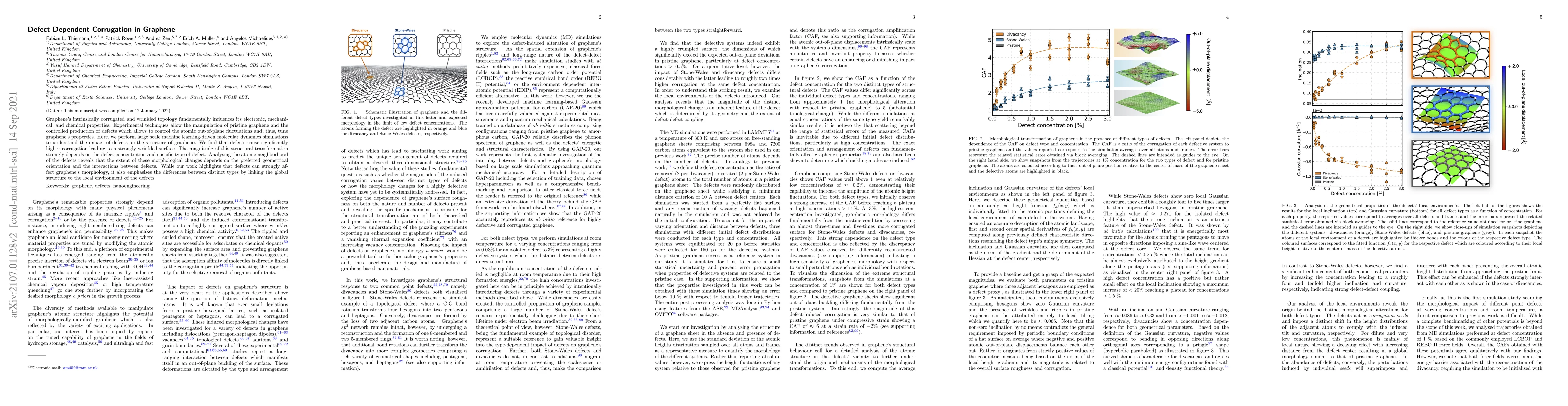 Defects in graphene significantly increase its corrugation, leading to a strongly wrinkled surface. This transformation depends on defect concentration and type, as well as the interactions between defects and their local environment.