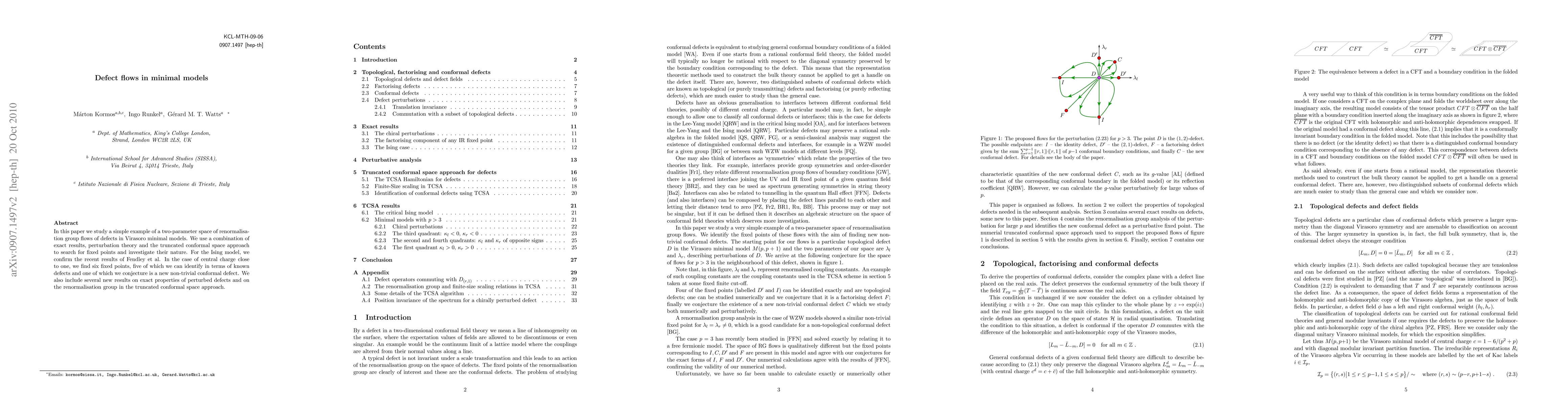 Researchers studied defect flows in minimal models, finding six fixed points with five known defects and one new non-trivial conformal defect, using exact results, perturbation theory, and the truncated conformal space approach.