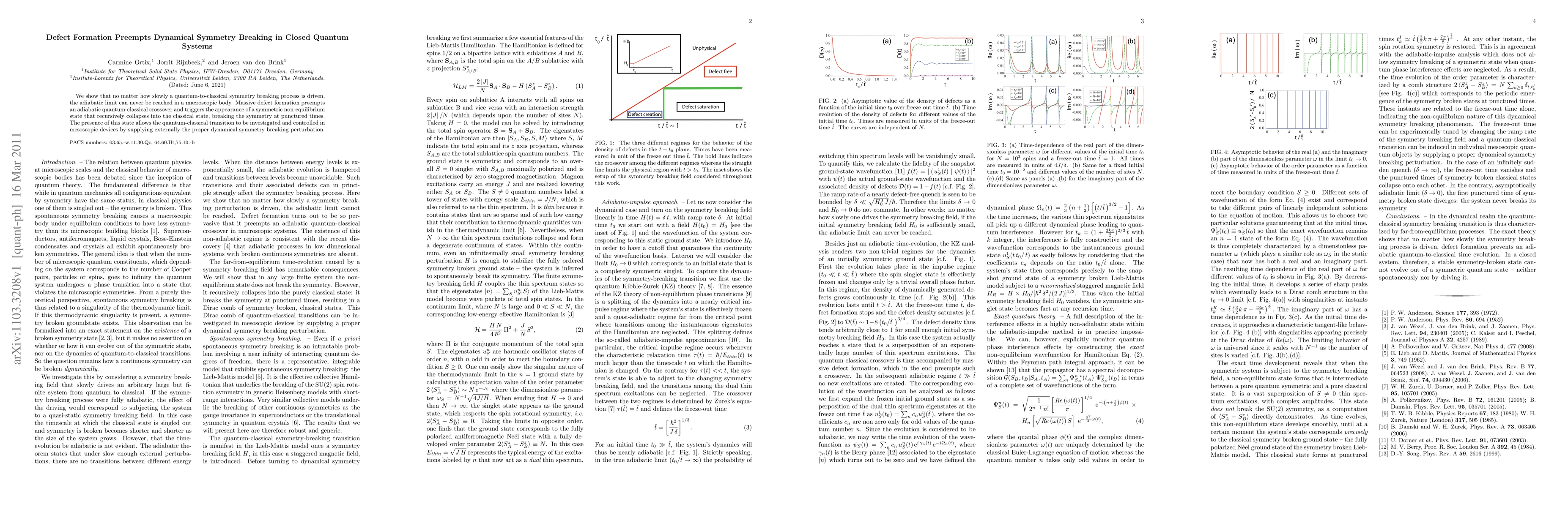 This paper demonstrates that defect formation in closed quantum systems prevents the adiabatic quantum-to-classical transition, leading to a symmetric non-equilibrium state that eventually collapses into the classical state at specific times, enabling the controlled investigation of the quantum-classical transition in mesoscopic devices.