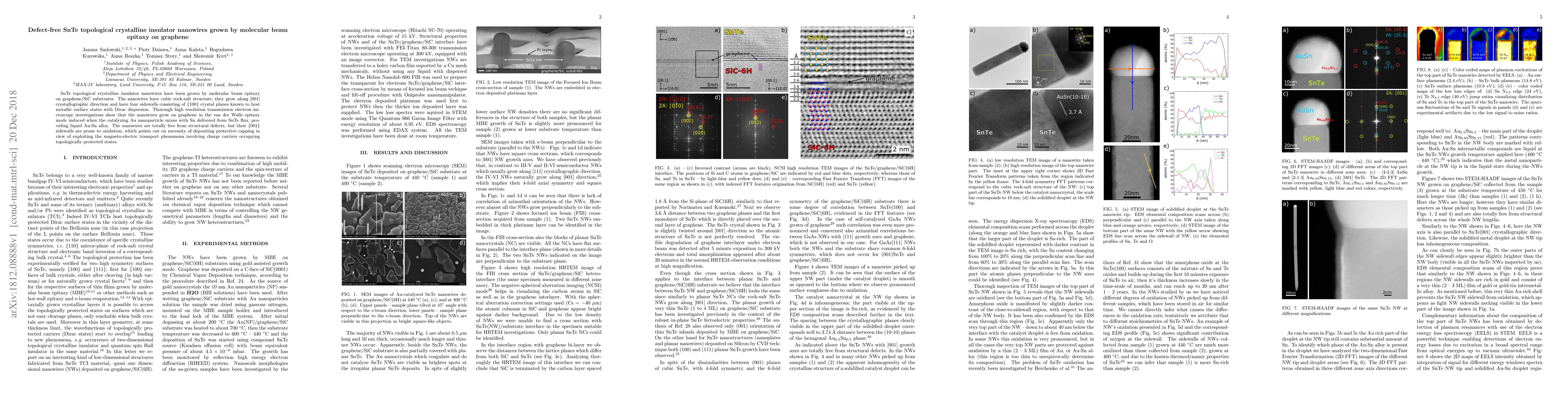 SnTe topological crystalline insulator nanowires, defect-free and grown on graphene via molecular beam epitaxy, exhibit metallic surface states along {100} sidewalls, necessitating protective capping to prevent oxidation for potential magneto-electric applications.