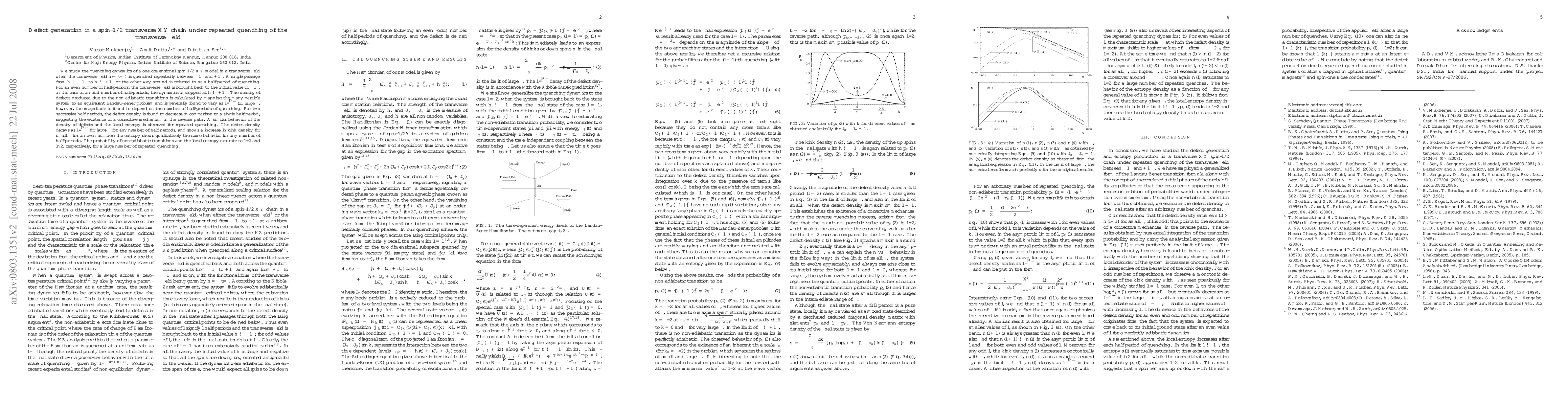 This paper investigates the defect generation in a spin-1/2 XY chain under repeated transverse field quenching, finding that the defect density varies as $1/\sqrt{\tau}$ for large $\tau$ and decreases for two successive half-periods, suggesting a corrective mechanism. The local entropy also shows similar behavior.