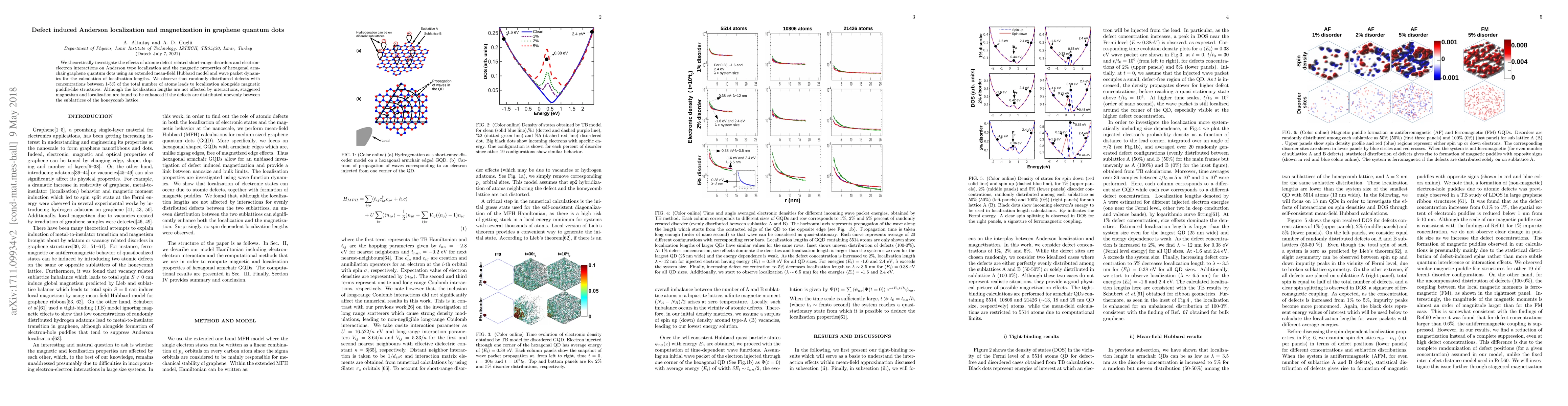 Research shows that adding atomic defects to graphene quantum dots can induce Anderson localization and magnetization, with uneven defect distributions enhancing localization. Randomly distributed defects between 1-5% of the total atoms lead to significant effects on magnetic properties.