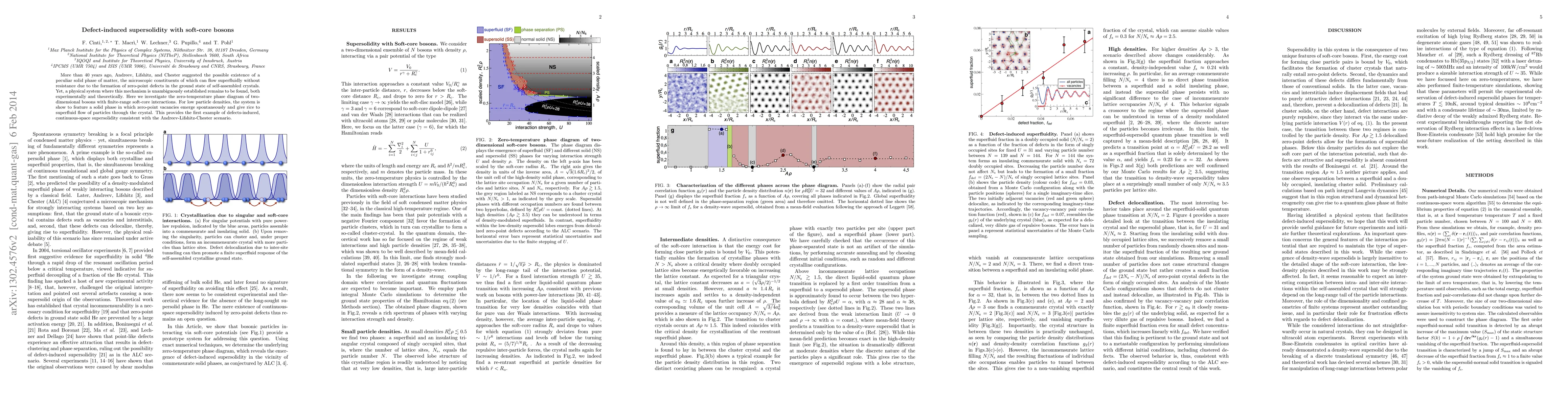 This paper explores the zero-temperature phase of two-dimensional bosons with soft-core interactions, revealing a solid phase where zero-point defects lead to superfluid flow, thus providing the first theoretical evidence for defect-induced supersolidity. This aligns with the long-proposed but experimentally unverified concept of supersolidity by Andreev, Lifshitz, and Chester.