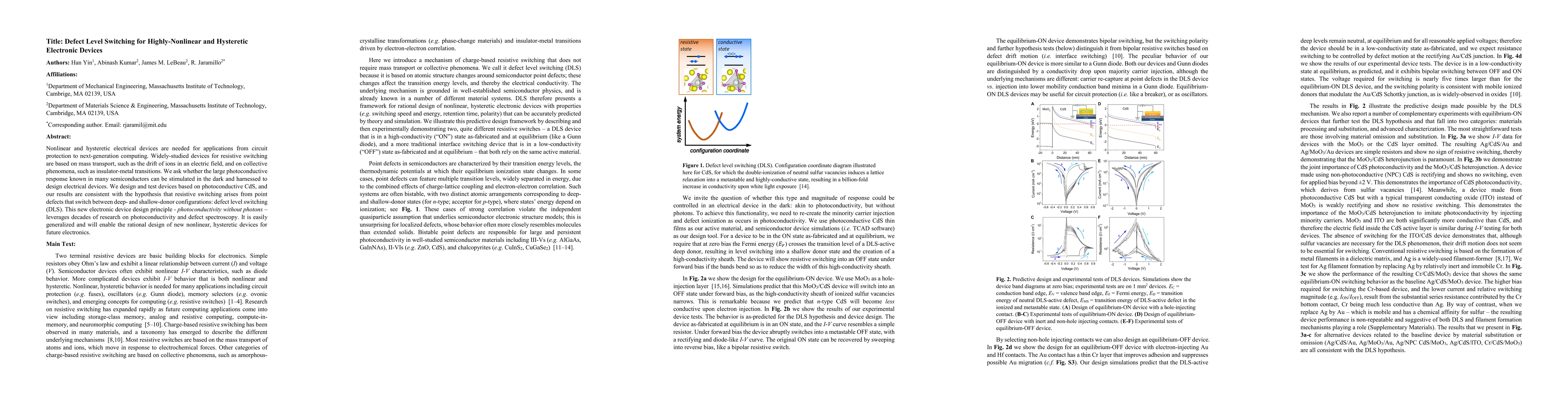 Researchers develop a new electronic device design principle called defect level switching (DLS) that harnesses photoconductive properties to create nonlinear, hysteretic devices without the need for photons. This breakthrough enables the rational design of next-generation computing devices.