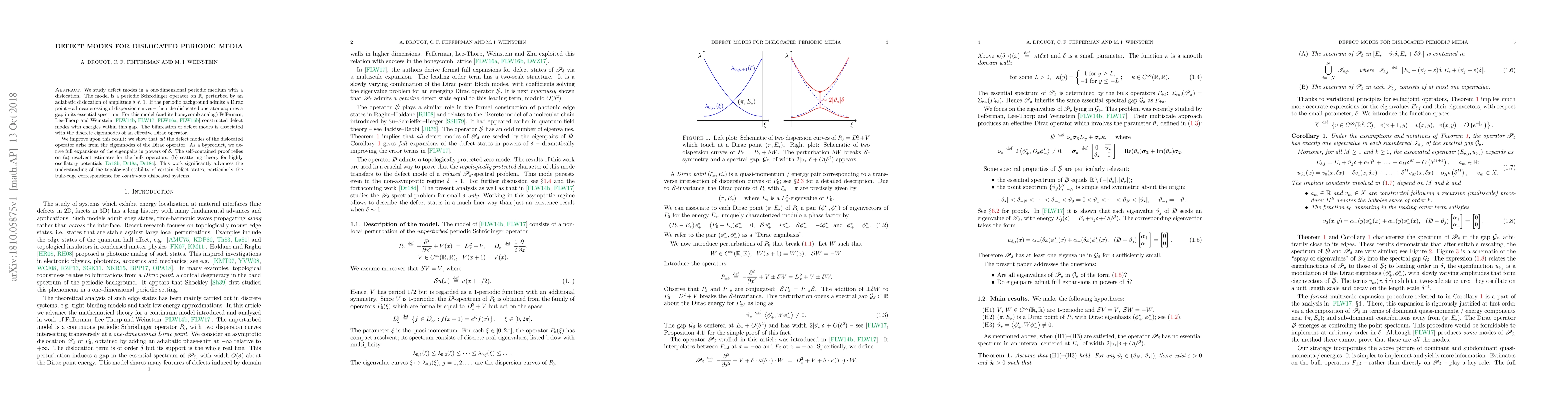 Researchers investigate defect modes in a dislocated periodic medium, finding that they arise from the eigenmodes of a Dirac operator, advancing understanding of topological stability and bulk-edge correspondence.