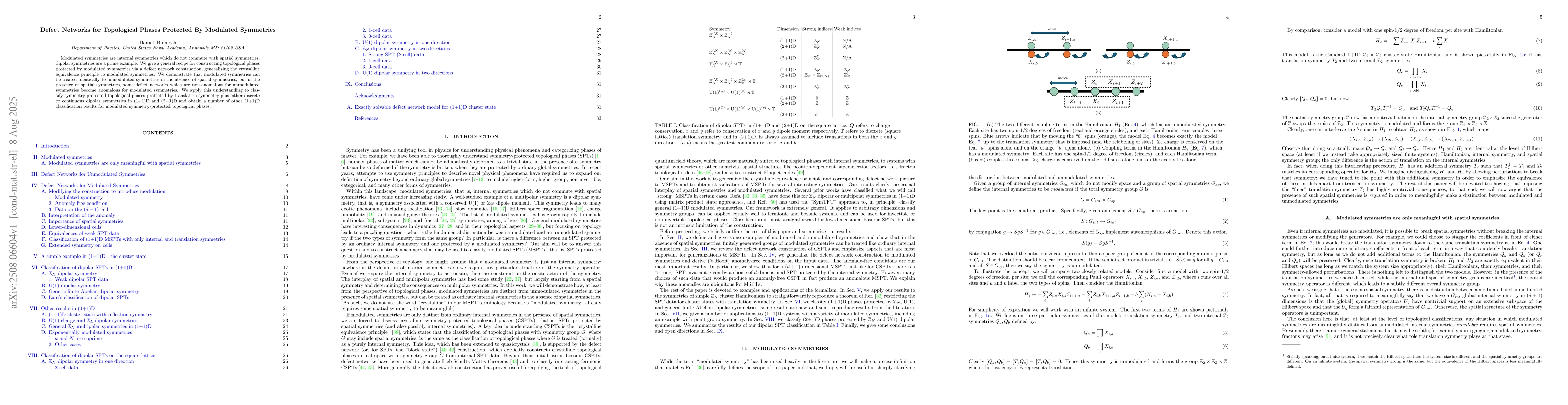 Modulated symmetries are internal symmetries which do not commute with spatial symmetries; dipolar symmetries are a prime example. We give a general recipe for constructing topological phases protected by modulated symmetries via a defect network construction, generalizing the crystalline equivalence principle to modulated symmetries. We demonstrate that modulated symmetries can be treated identically to unmodulated symmetries in the absence of spatial symmetries, but in the presence of spatial symmetries, some defect networks which are non-anomalous for unmodulated symmetries become anomalous for modulated symmetries. We apply this understanding to classify symmetry-protected topological phases protected by translation symmetry plus either discrete or continuous dipolar symmetries in (1+1)D and (2+1)D and obtain a number of other (1+1)D classification results for modulated symmetry-protected topological phases.