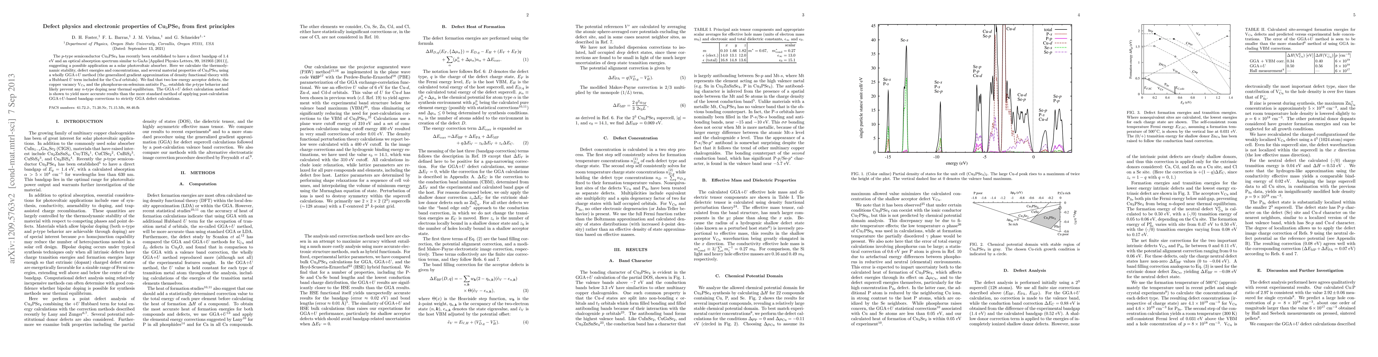Researchers used first-principles calculations to study Cu3PSe4, finding two defects that explain its p-type behavior and suggesting potential applications in solar photovoltaic absorbers.
