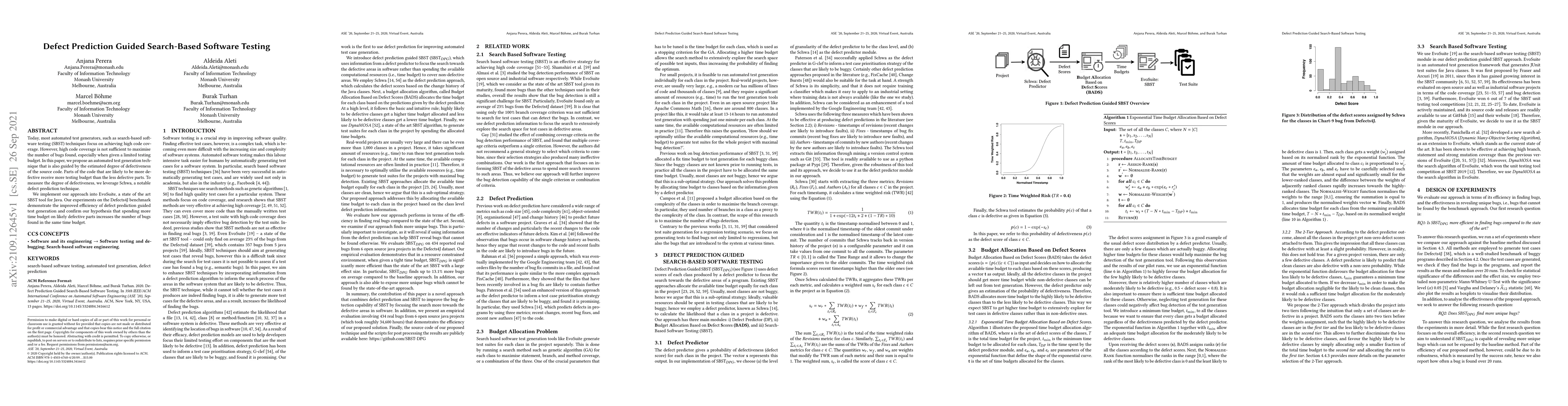 This paper proposes an enhanced search-based software testing technique that prioritizes testing on parts of the code with higher estimated defectiveness, leveraging Schwa for defect prediction. Implemented in EvoSuite, the approach shows improved efficiency in finding bugs compared to traditional high code coverage methods.