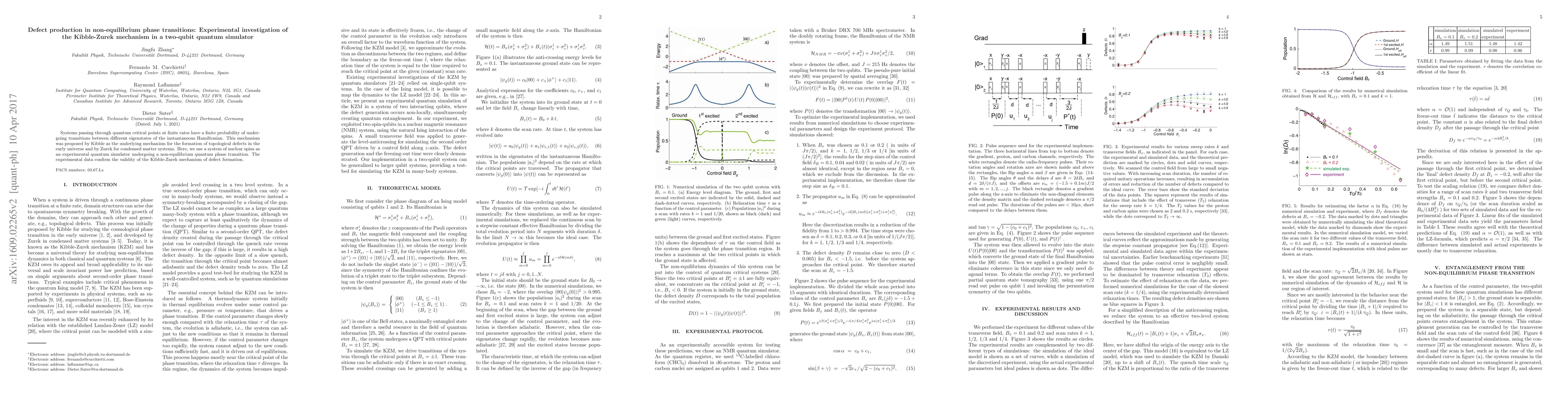 The study experimentally investigates the Kibble-Zurek mechanism in a two-qubit quantum simulator based on nuclear spins, confirming the prediction of defect production during nonequilibrium phase transitions at quantum critical points. This validates the theoretical framework for understanding defect formation in both early universe and condensed matter systems.