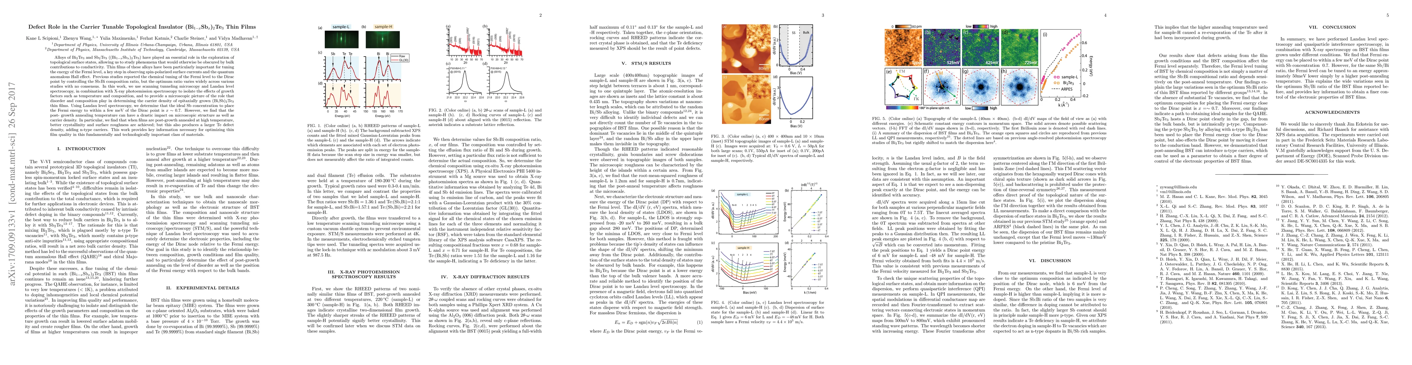 Alloys of Bi$_2$Te$_3$ and Sb$_2$Te$_3$ ((Bi$_{1-x}$Sb$_x$)$_2$Te$_3$) have played an essential role in the exploration of topological surface states, allowing us to study phenomena that would otherwise be obscured by bulk contributions to conductivity. Thin films of these alloys have been particularly important for tuning the energy of the Fermi level, a key step in observing spin-polarized surface currents and the quantum anomalous Hall effect. Previous studies reported the chemical tuning of the Fermi level to the Dirac point by controlling the Sb:Bi composition ratio, but the optimum ratio varies widely across various studies with no consensus. In this work, we use scanning tunneling microscopy and Landau level spectroscopy, in combination with X-ray photoemission spectroscopy to isolate the effects of growth factors such as temperature and composition, and to provide a microscopic picture of the role that disorder and composition play in determining the carrier density of epitaxially grown (Bi,Sb)$_2$Te$_3$ thin films. Using Landau level spectroscopy, we determine that the ideal Sb concentration to place the Fermi energy to within a few meV of the Dirac point is $x\sim 0.7$. However, we find that the post- growth annealing temperature can have a drastic impact on microscopic structure as well as carrier density. In particular, we find that when films are post-growth annealed at high temperature, better crystallinity and surface roughness are achieved; but this also produces a larger Te defect density, adding n-type carriers. This work provides key information necessary for optimizing thin film quality in this fundamentally and technologically important class of materials.