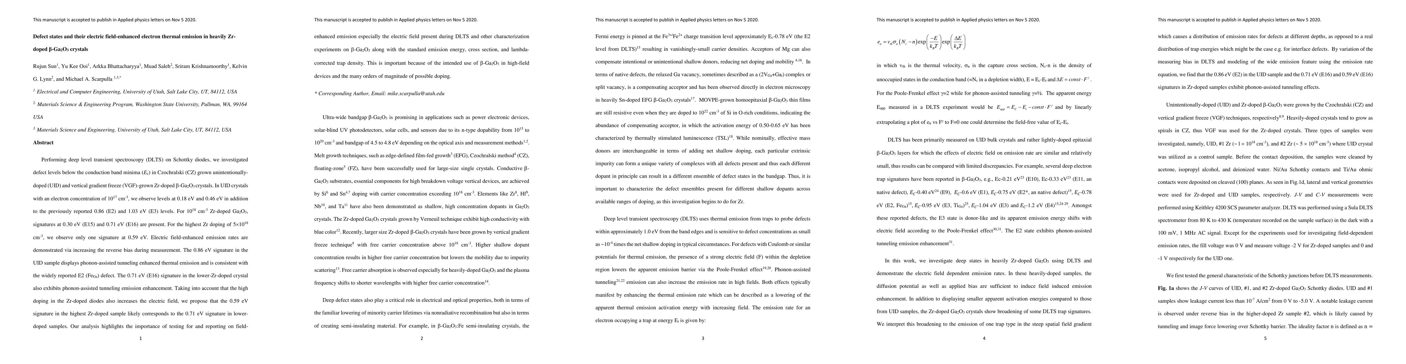 Researchers studied Zr-doped beta-Ga2O3 crystals using DLTS and observed new defect levels in response to increasing electric field; these findings highlight the importance of testing for field-enhanced emission in high-field devices.