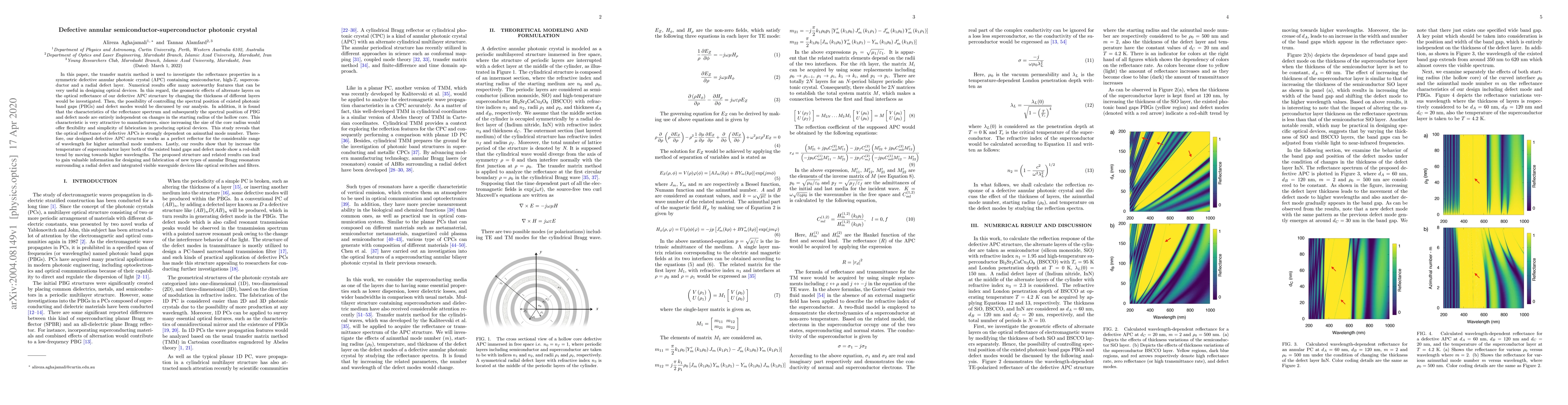 A research paper investigates a defective annular photonic crystal structure, showing its reflectance properties and potential for designing optical devices like switches and filters. The study reveals the importance of azimuthal mode number and temperature in controlling spectral positions.