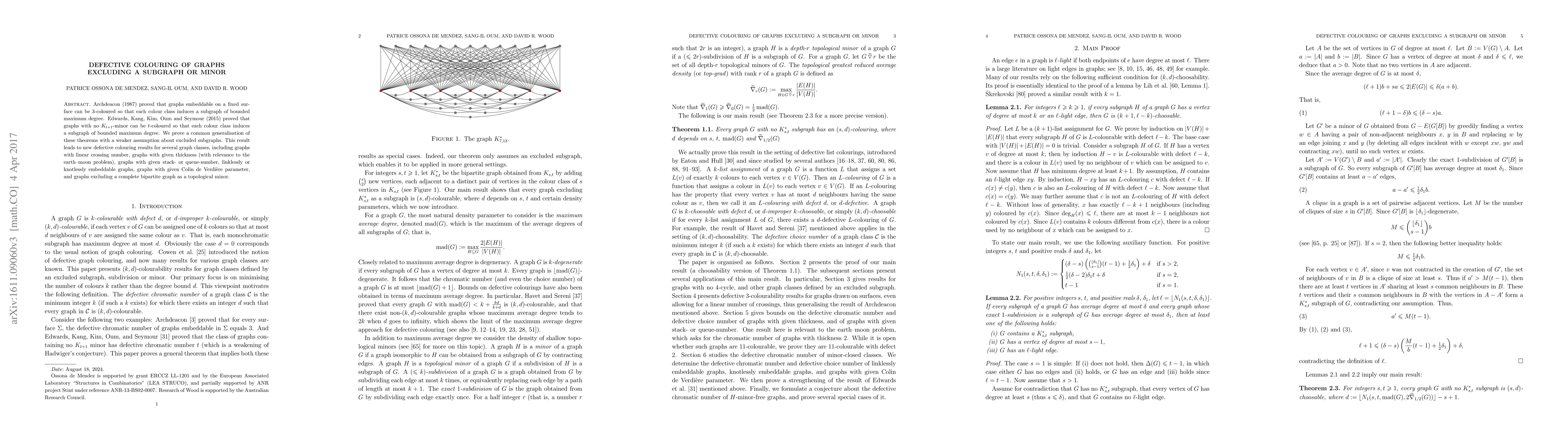 The paper generalizes previous results on graph colouring, showing that graphs excluding a specific subgraph or minor can be coloured with a reduced number of colours, with each colour class inducing a subgraph of bounded maximum degree. This generalization provides new defective colouring results for various graph classes, including those with linear crossing number and those with given thickness.