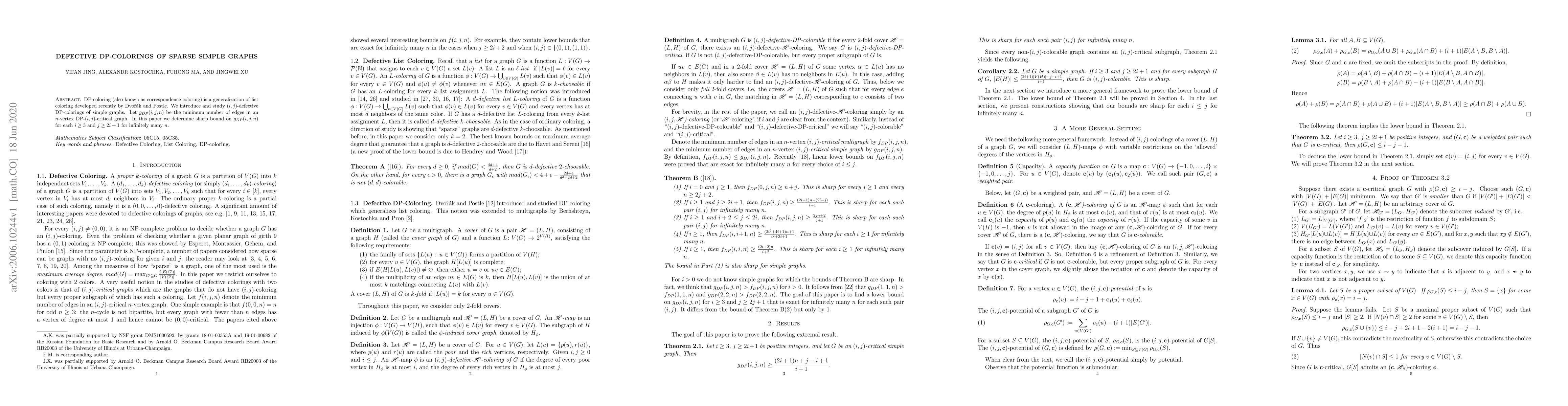 This paper explores $(i,j)$-defective DP-colorings in sparse simple graphs, introducing and determining sharp bounds for the minimum number of edges in DP-$(i,j)$-critical graphs for specific values of $i$ and $j$. It provides exact values for $g_{DP}(i,j,n)$ for infinitely many $n$.