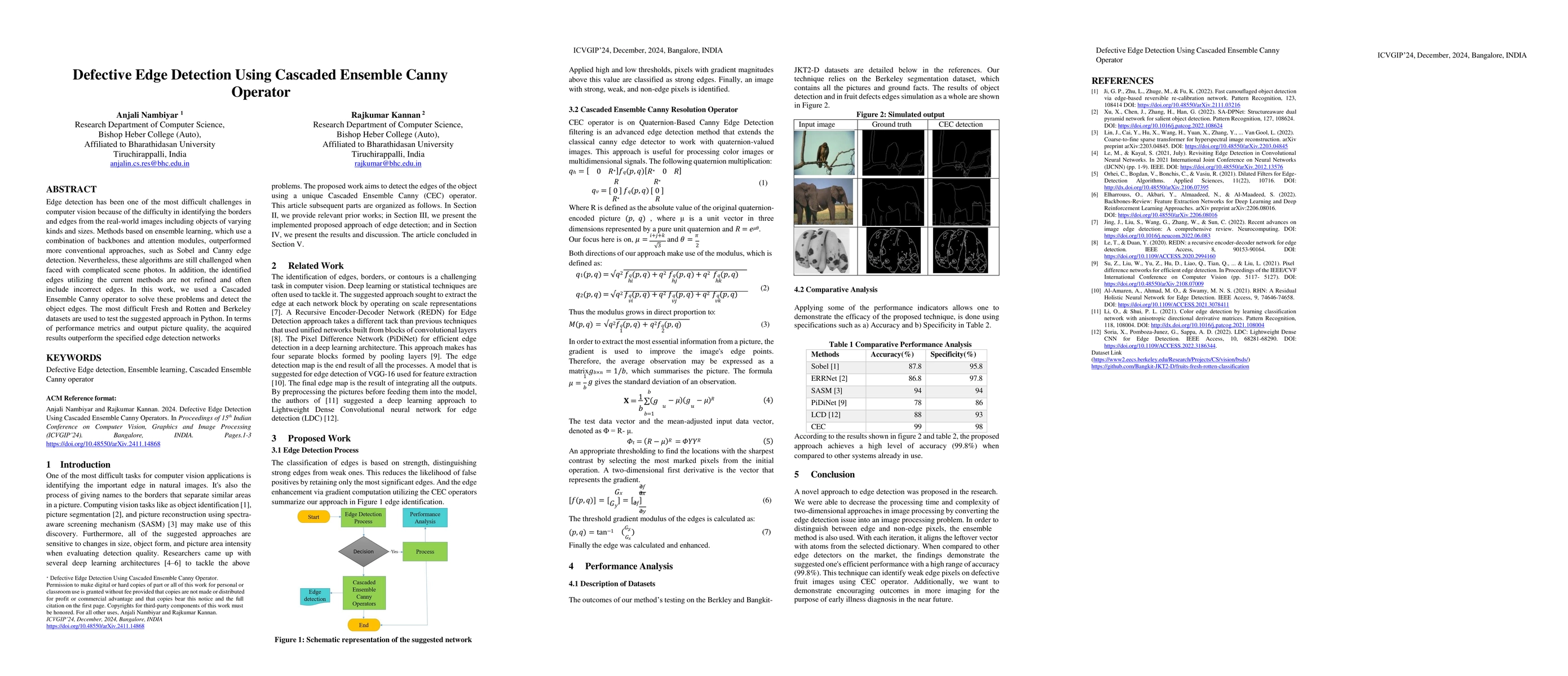 The proposed approach uses a Cascaded Ensemble Canny operator to solve defective edge detection problems in computer vision.