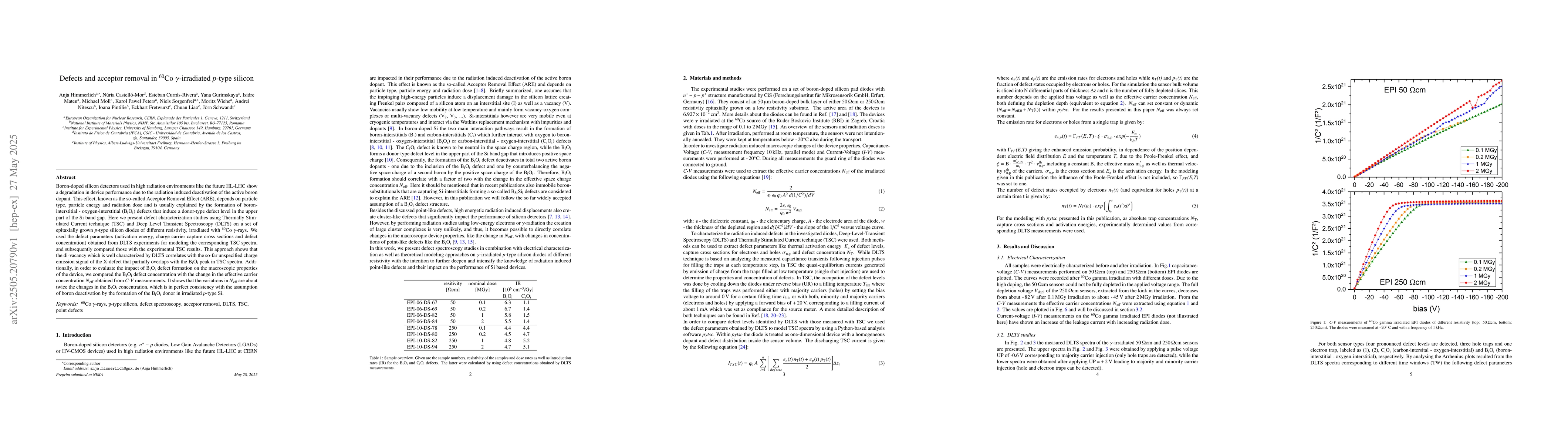 Research on 60Co γ-irradiated p-type silicon found a correlation between di-vacancy defects and the Acceptor Removal Effect, with the formation of BiOi defects causing significant degradation in device performance.