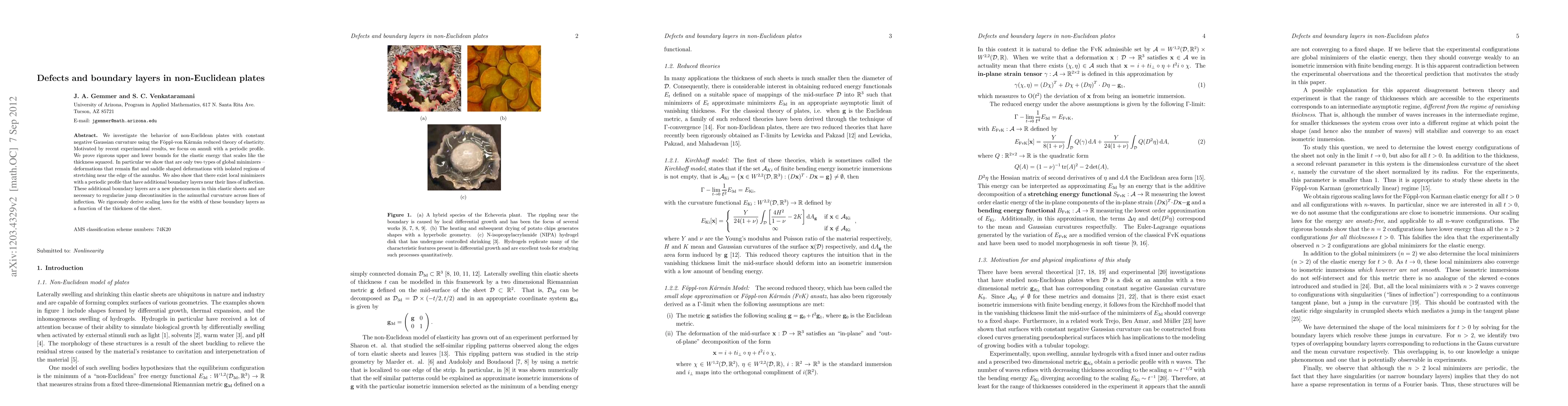 This paper examines the elastic behavior of non-Euclidean plates with constant negative curvature, proving that the global minimizers are either flat or saddle-shaped with localized stretching near the edges. It also identifies new boundary layers in local minimizers that regularize curvature discontinuities, providing scaling laws for their width relative to the plate thickness.