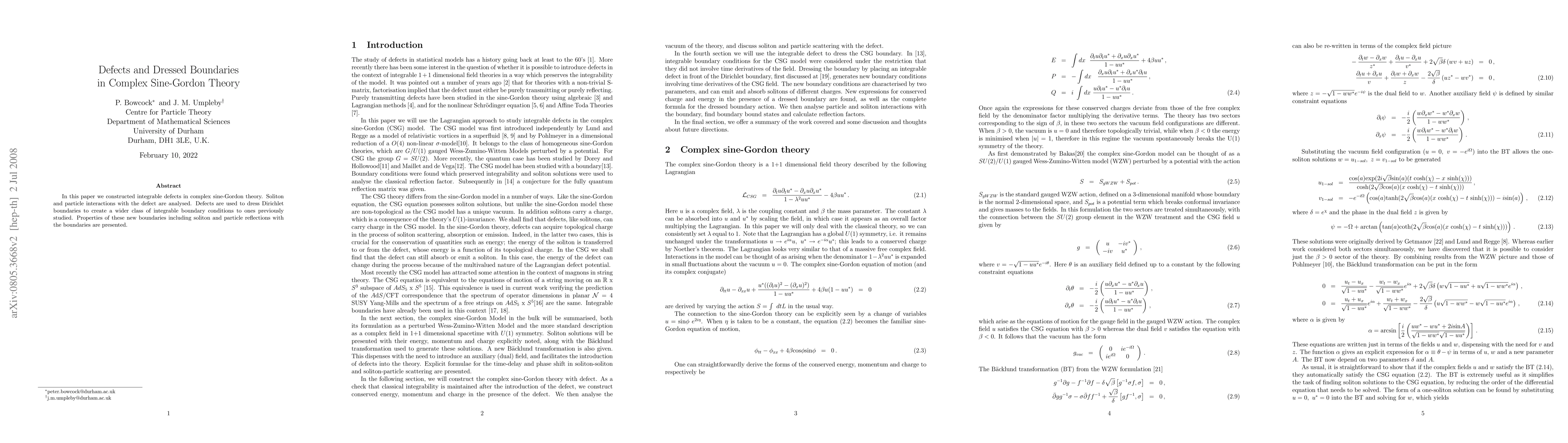 This paper constructs integrable defects in complex sine-Gordon theory, analyzing soliton and particle interactions with these defects. It uses these defects to dress Dirichlet boundaries, creating new integrable boundary conditions and presenting their properties, including soliton and particle reflections.