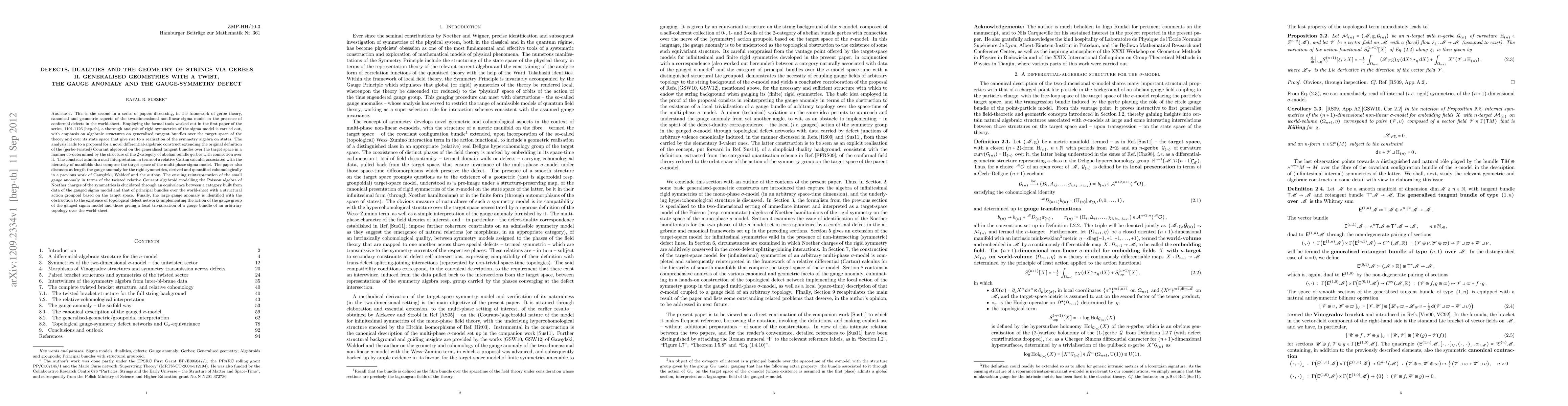 This is the second in a series of papers discussing in the framework of gerbe theory canonical and geometric aspects of the 2d nonlinear sigma model in the presence of conformal defects in the worldsheet. Employing the formal tools worked out in the first paper of the series, 1101.1126 [hep-th], a thorough analysis of rigid symmetries of the sigma model is carried out with emphasis on algebraic structures on generalised tangent bundles over the target space of the theory and over its state space that give rise to a realisation of the symmetry algebra on states. The analysis leads to a proposal for a novel differential-algebraic construct extending the original definition of the (gerbe-twisted) Courant algebroid on the generalised tangent bundles over the target space in a manner codetermined by the structure of the 2-category of abelian bundle gerbes with connection over it. The construct admits a neat interpretation in terms of a relative Cartan calculus associated with the hierarchy of manifolds that compose the target space of the multiphase sigma model. The paper also discusses at length the gauge anomaly for the rigid symmetries, derived and quantified cohomologically in a previous work of Gaw\c{e}dzki, Waldorf and the author. The ensuing reinterpretation of the small gauge anomaly in terms of the twisted rel. Courant algebroid modelling the Poisson algebra of Noether charges of the symmetries is elucidated through an equivalence between a category built from data of the gauged sigma model and that of principal bundles over the worldsheet with a structural action groupoid based on the target space. Finally, the large gauge anomaly is identified with the obstruction to the existence of topological defect networks implementing the action of the gauge group of the gauged sigma model and those giving a local trivialisation of a gauge bundle of an arbitrary topology over the worldsheet.