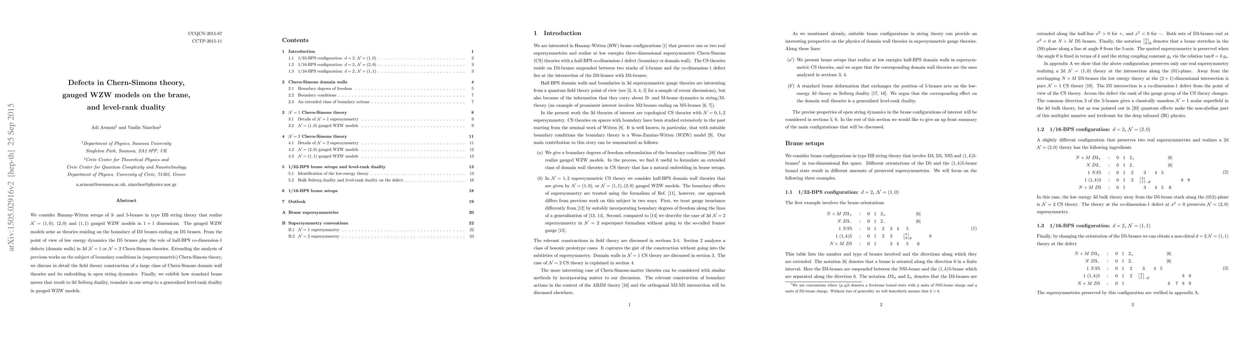 We consider Hanany-Witten setups of 3- and 5-branes in type IIB string theory that realize N=(1,0),(2,0) and (1,1) gauged WZW models in 1+1 dimensions. The gauged WZW models arise as theories residing on the boundary of D3 branes ending on D5 branes. From the point of view of low energy dynamics the D5 branes play the role of half-BPS co-dimension-1 defects (domain walls) in 3d N=1 or N=2 Chern-Simons theories. Extending the analysis of previous works on the subject of boundary conditions in (supersymmetric) Chern-Simons theory, we discuss in detail the field theory construction of a large class of Chern-Simons domain wall theories and its embedding in open string dynamics. Finally, we exhibit how standard brane moves that result to 3d Seiberg duality, translate in our setup to a generalized level-rank duality in gauged-WZW models.