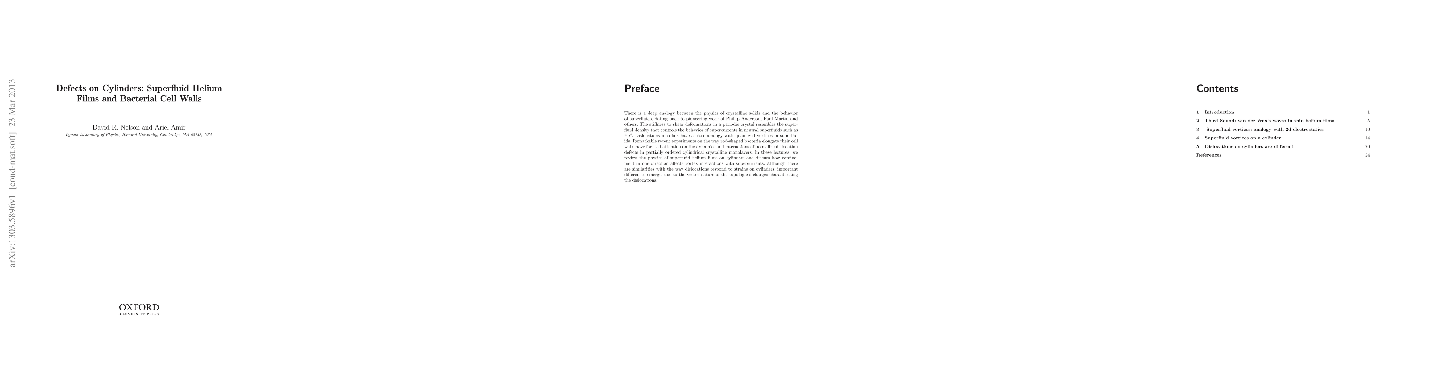 Research explores similarities between defects in bacterial cell walls and superfluid helium films on cylinders, revealing analogies in physics and behavior, but also highlighting key differences due to vector nature of topological charges.