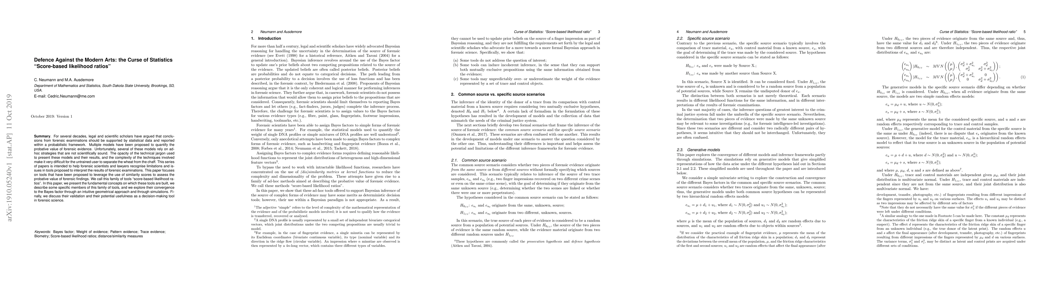 For several decades, legal and scientific scholars have argued that conclusions from forensic examinations should be supported by statistical data and reported within a probabilistic framework. Multiple models have been proposed to quantify the probative value of forensic evidence. Unfortunately, several of these models rely on ad-hoc strategies that are not scientifically sound. The opacity of the technical jargon used to present these models and their results, and the complexity of the techniques involved make it very difficult for the untrained user to separate the wheat from the chaff. This series of papers is intended to help forensic scientists and lawyers recognise limitations and issues in tools proposed to interpret the results of forensic examinations. This paper focuses on tools that have been proposed to leverage the use of similarity scores to assess the probative value of forensic findings. We call this family of tools "score-based likelihood ratios". In this paper, we present the fundamental concepts on which these tools are built, we describe some specific members of this family of tools, and we explore their convergence to the Bayes factor through an intuitive geometrical approach and through simulations. Finally, we discuss their validation and their potential usefulness as a decision-making tool in forensic science.