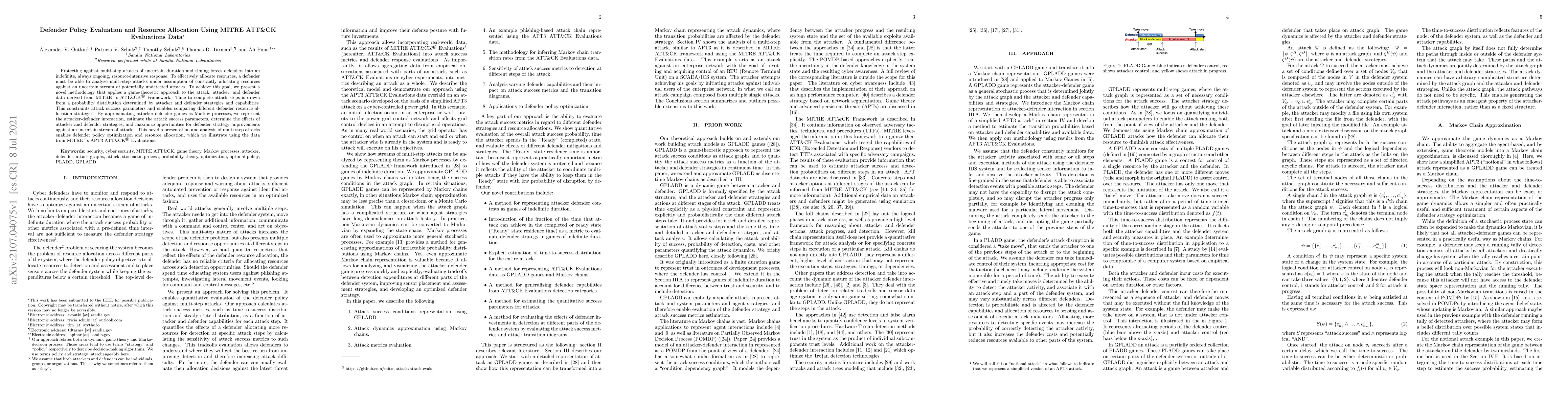 Protecting against multi-step attacks of uncertain duration and timing forces defenders into an indefinite, always ongoing, resource-intensive response. To effectively allocate resources, a defender must be able to analyze multi-step attacks under assumption of constantly allocating resources against an uncertain stream of potentially undetected attacks. To achieve this goal, we present a novel methodology that applies a game-theoretic approach to the attack, attacker, and defender data derived from MITRE's ATT&CK Framework. Time to complete attack steps is drawn from a probability distribution determined by attacker and defender strategies and capabilities. This constraints attack success parameters and enables comparing different defender resource allocation strategies. By approximating attacker-defender games as Markov processes, we represent the attacker-defender interaction, estimate the attack success parameters, determine the effects of attacker and defender strategies, and maximize opportunities for defender strategy improvements against an uncertain stream of attacks. This novel representation and analysis of multi-step attacks enables defender policy optimization and resource allocation, which we illustrate using the data from MITRE's APT3 ATT&CK Evaluations.
