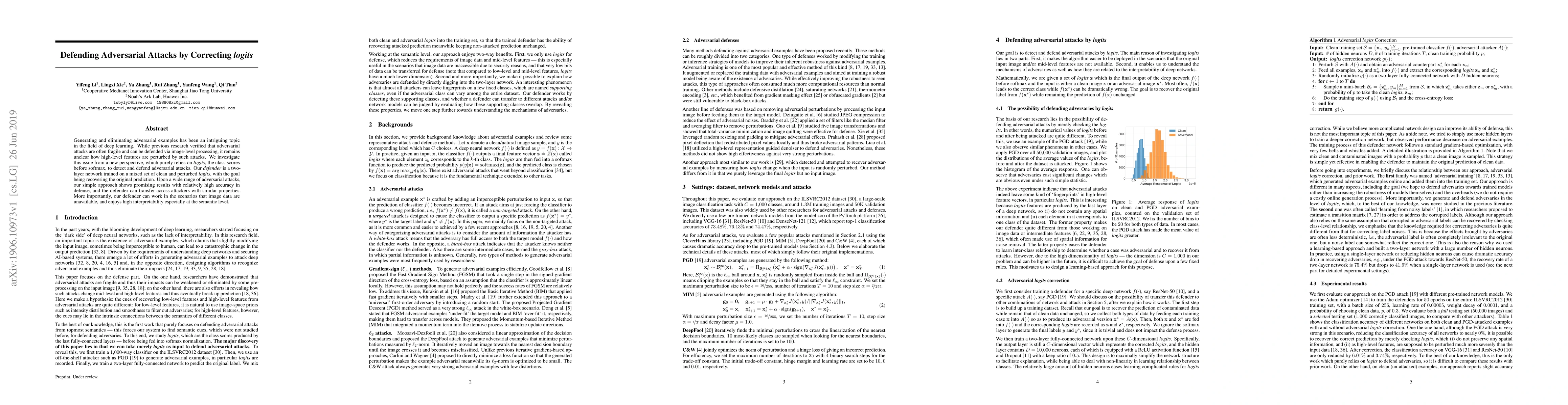 This paper proposes a novel defense mechanism against adversarial attacks by correcting logits, the raw class scores before softmax, using a two-layer network trained on both clean and perturbed logits. The approach demonstrates high accuracy in defending against various attacks and offers interpretability, especially at the semantic level, even when image data is unavailable.