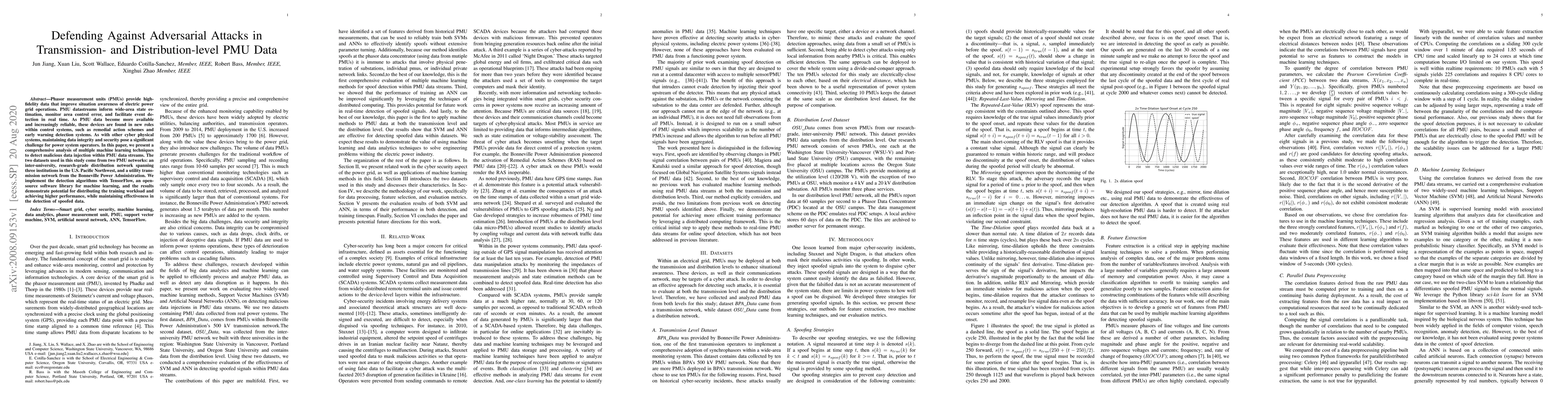 This paper analyzes machine learning techniques to detect malicious data injection in PMU data streams, aiming to secure the integrity of power grid operations. Using datasets from two PMU networks, the study implements detection algorithms with TensorFlow, showing potential for distributed training and effective spoofed data detection.
