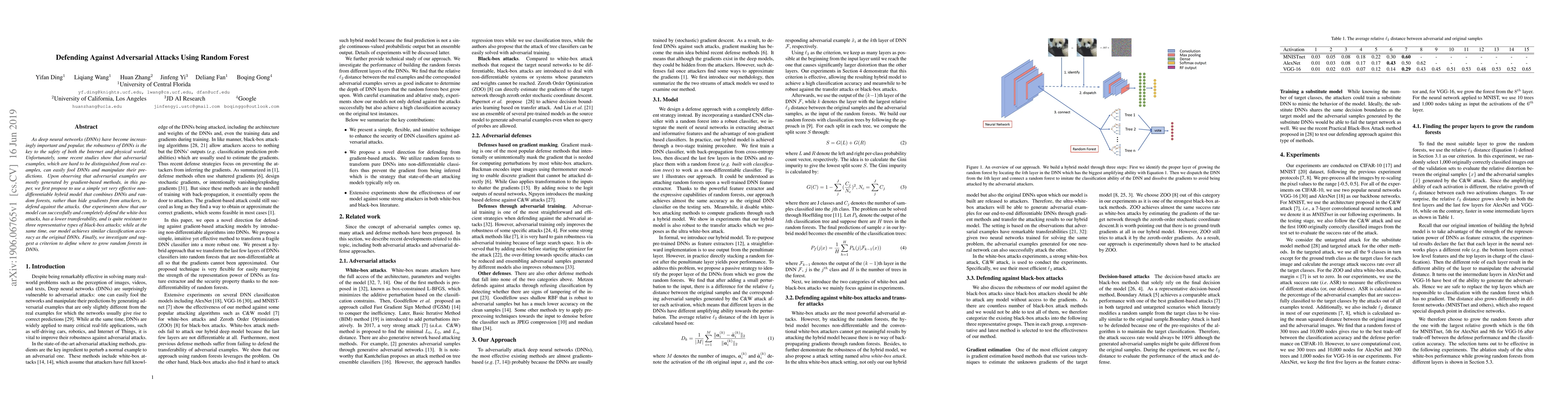 A new defense method against adversarial attacks uses a hybrid model combining deep neural networks with random forests, achieving similar accuracy while improving robustness. This approach is effective against both white-box and black-box attacks, and provides a new criterion for defining where to grow random forests in DNNs.