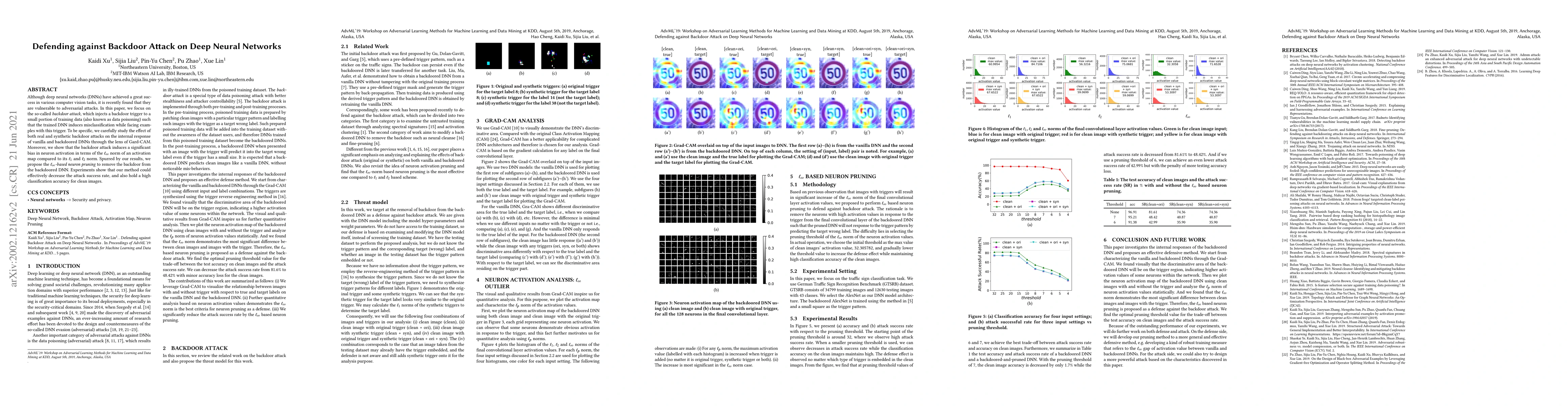 This paper investigates the vulnerability of deep neural networks to backdoor attacks, where a trigger is injected into training data to cause misclassification. The authors propose an $\ell_\infty$-based neuron pruning method to mitigate the attack, demonstrating its effectiveness in reducing the attack success rate while maintaining high classification accuracy for clean images.
