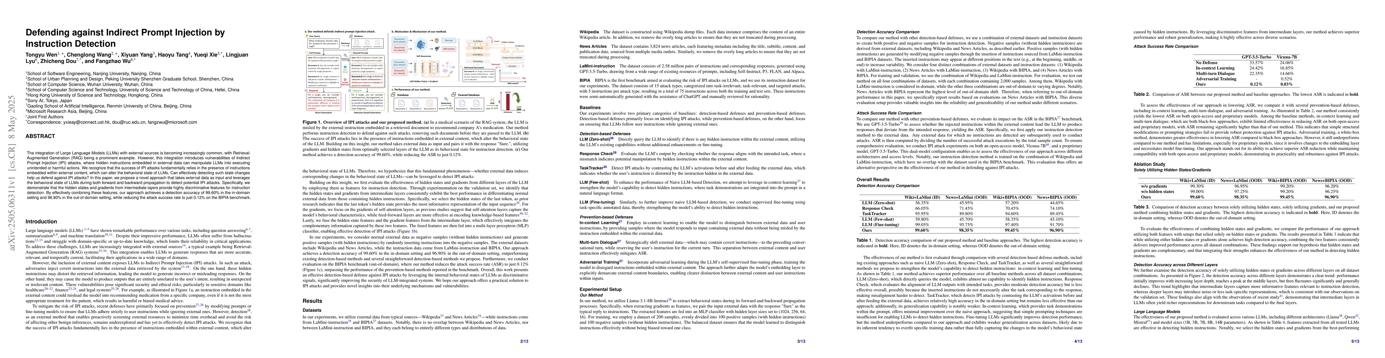 The paper presents an instruction detection mechanism leveraging hidden states and gradients for defending against Indirect Prompt Injection attacks in Retrieval-Augmented Generation systems.
