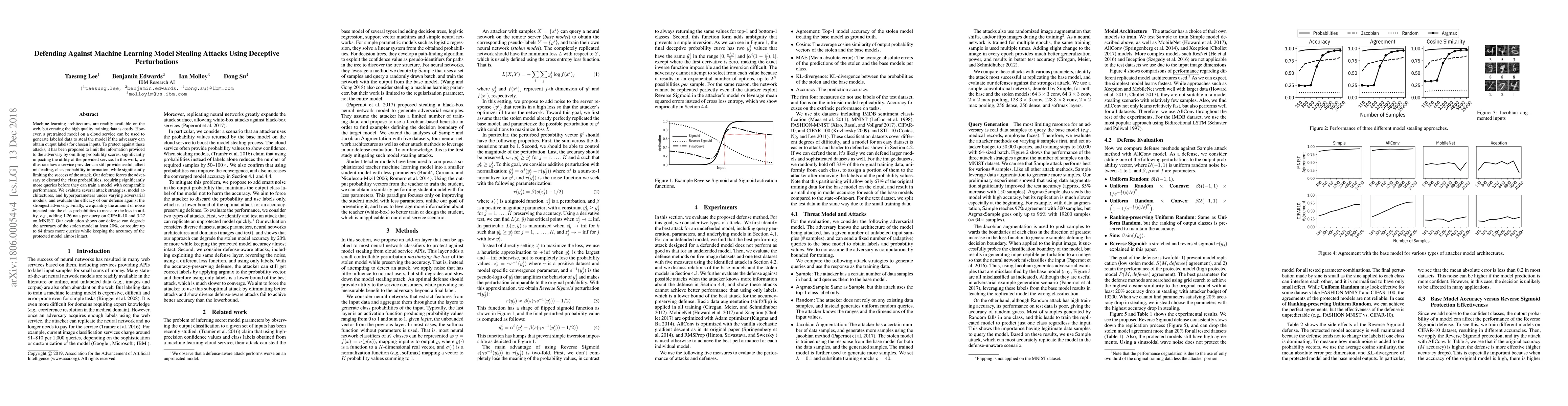 The research proposes a defense mechanism using deceptive perturbations to protect machine learning models from model stealing attacks. It evaluates various attack strategies, model architectures, and hyperparameters against a strong adversarial model.