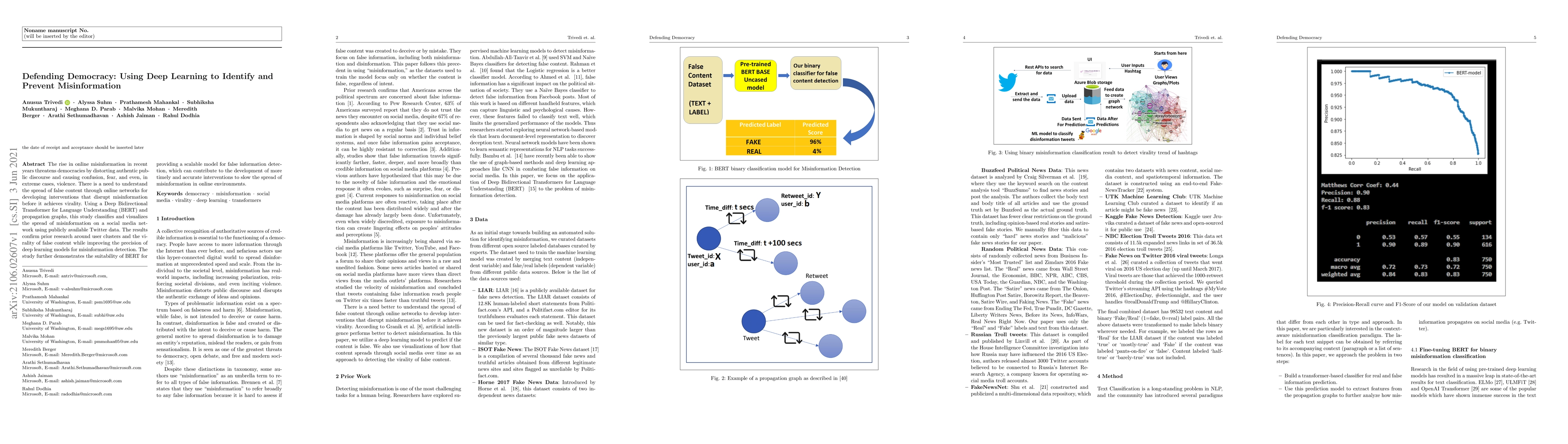The rise in online misinformation in recent years threatens democracies by distorting authentic public discourse and causing confusion, fear, and even, in extreme cases, violence. There is a need to understand the spread of false content through online networks for developing interventions that disrupt misinformation before it achieves virality. Using a Deep Bidirectional Transformer for Language Understanding (BERT) and propagation graphs, this study classifies and visualizes the spread of misinformation on a social media network using publicly available Twitter data. The results confirm prior research around user clusters and the virality of false content while improving the precision of deep learning models for misinformation detection. The study further demonstrates the suitability of BERT for providing a scalable model for false information detection, which can contribute to the development of more timely and accurate interventions to slow the spread of misinformation in online environments.