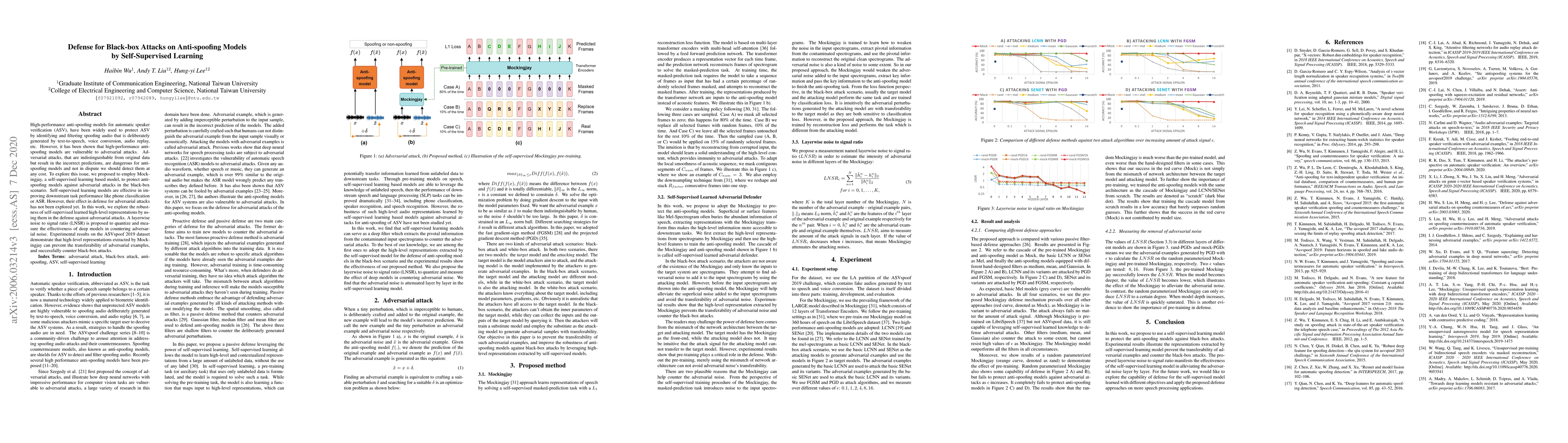 This paper proposes Mockingjay, a self-supervised learning model to defend against black-box adversarial attacks on high-performance anti-spoofing models used in automatic speaker verification. Experimental results show that Mockingjay's high-level representations effectively prevent the transferability of adversarial examples and enhance the robustness of anti-spoofing models.