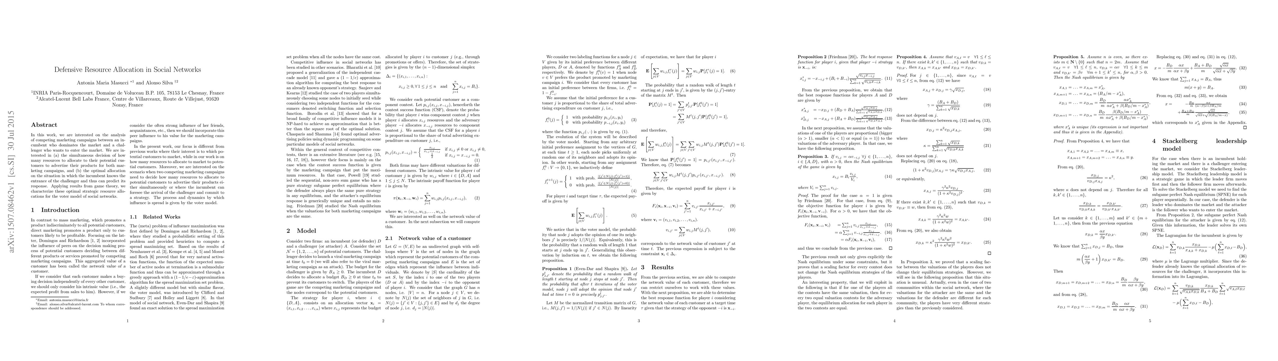 This paper analyzes competing marketing campaigns between an incumbent and a challenger in social networks, focusing on optimal resource allocation strategies using game theory and the voter model to predict responses and competitive dynamics.