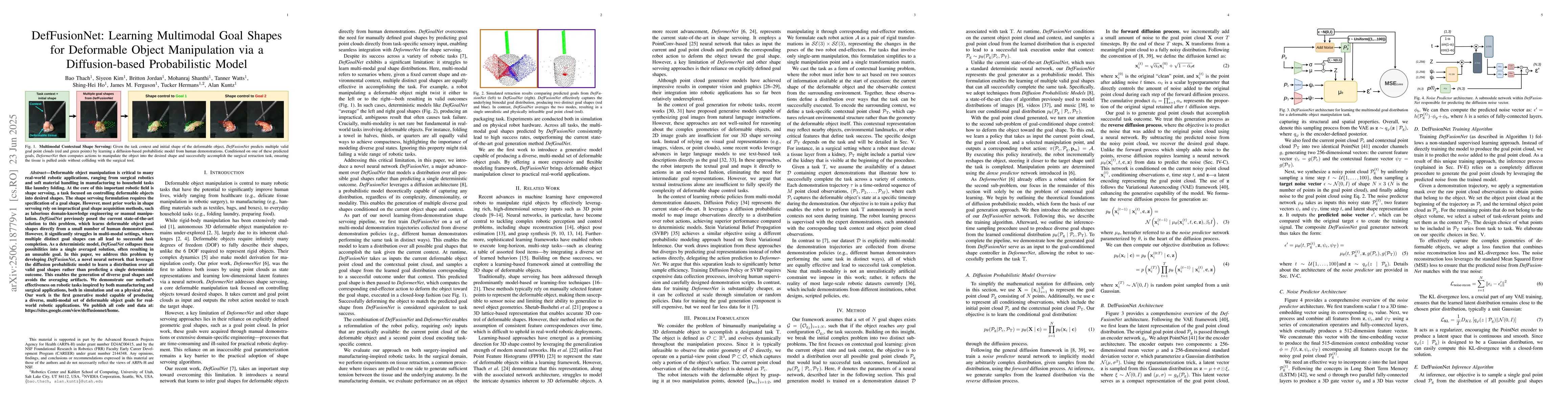 The research introduces DefFusionNet, a neural network that learns a multimodal distribution over diverse goal shapes for deformable object manipulation tasks using a diffusion probabilistic model.