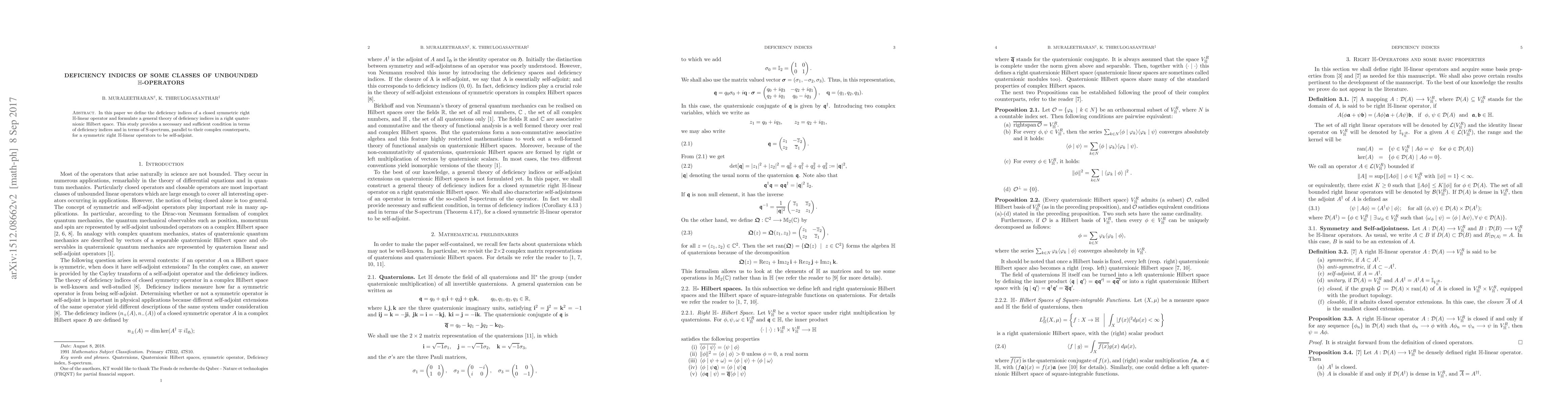 In this paper we define the deficiency indices of a closed symmetric right $\mathbb{H}$-linear operator and formulate a general theory of deficiency indices in a right quaternionic Hilbert space. This study provides a necessary and sufficient condition in terms of deficiency indices and in terms of S-spectrum, parallel to their complex counterparts, for a symmetric right $\mathbb{H}$-linear operators to be self-adjoint.