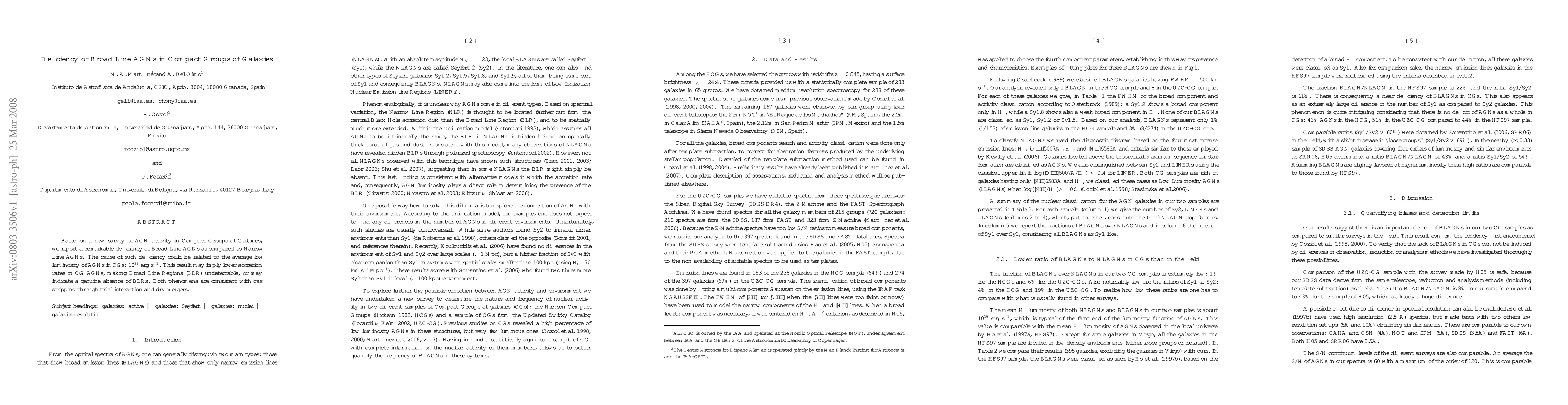 Based on a new survey of AGN activity in Compact Groups of Galaxies, we report a remarkable deficiency of Broad Line AGNs as compared to Narrow Line AGNs. The cause of such deficiency could be related to the average low luminosity of AGNs in CGs: $10^{39}$ erg s$^{-1}$. This result may imply lower accretion rates in CG AGNs, making Broad Line Regions (BLR) undetectable, or may indicate a genuine absence of BLRs. Both phenomena are consistent with gas stripping through tidal interaction and dry mergers.
