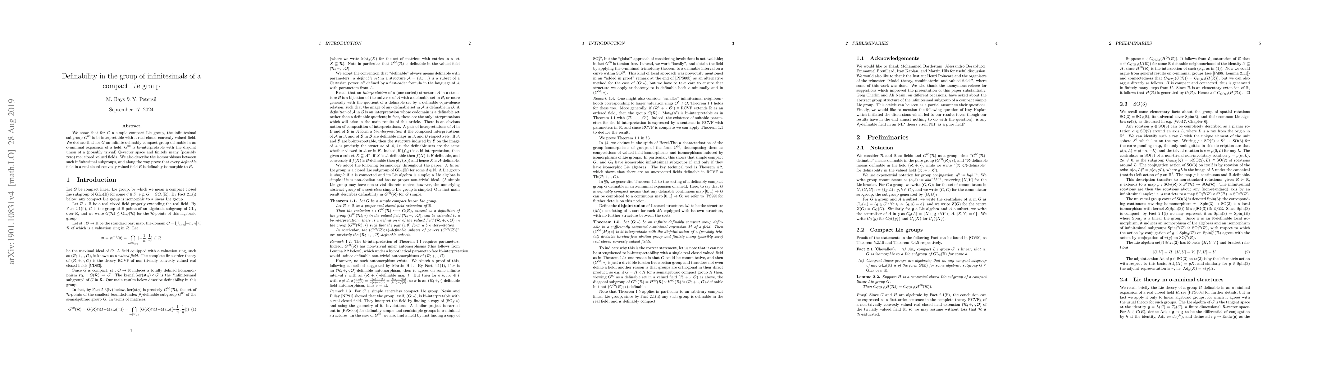 We show that for $G$ a simple compact Lie group, the infinitesimal subgroup $G^{00}$ is bi-intepretable with a real closed valued field. We deduce that for $G$ an infinite definably compact group definable in an o-minimal expansion of a field, $G^{00}$ is bi-interpretable with the disjoint union of a (possibly trivial) $\mathbb{Q}$-vector space and finitely many (possibly zero) real closed valued fields. We also describe the isomorphisms between such infinitesimal subgroups, and along the way prove that every {\em definable} field in a real closed convexly valued field $R$ is definably isomorphic to $R$.