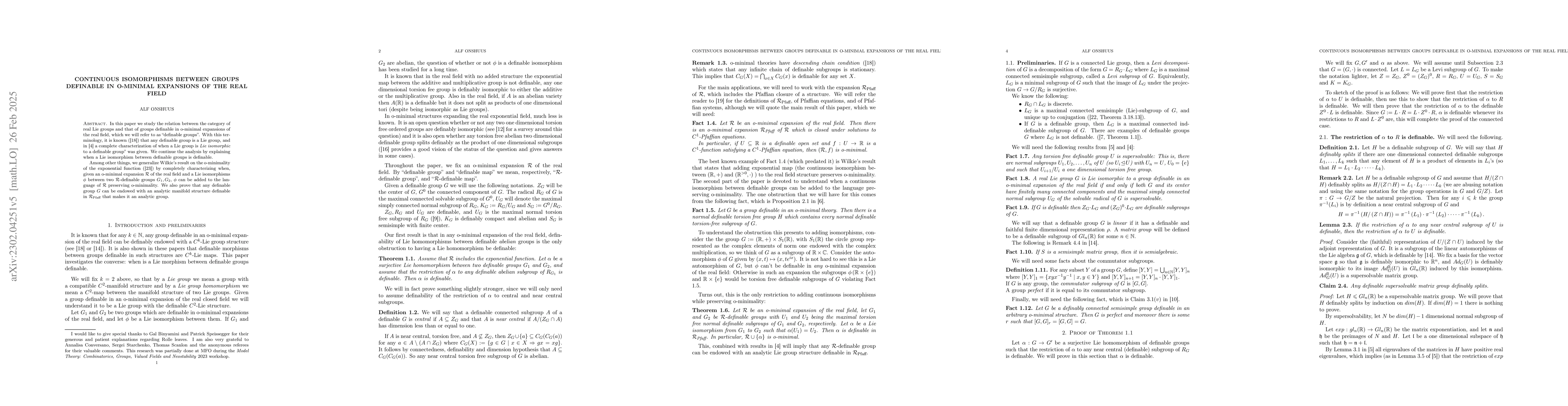 This paper investigates the conditions under which continuous isomorphisms between groups definable in o-minimal expansions of the real field are themselves definable. It proves the preservation of o-minimality when adding a function symbol for any Lie isomorphism between such definable groups and shows that any definable group can be endowed with a definable analytic manifold structure.