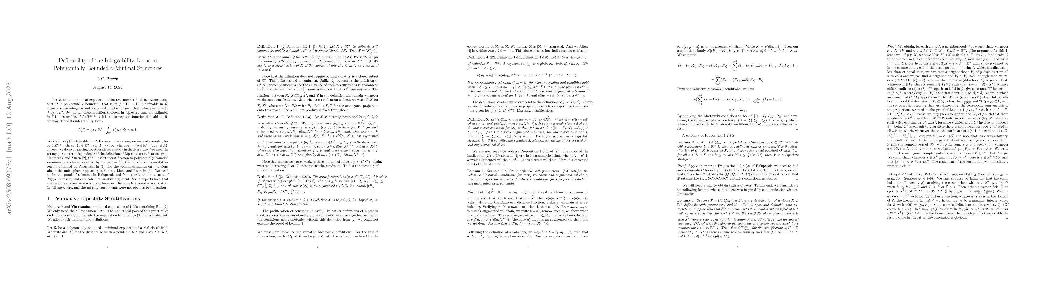 A note connecting arguments scattered in the extant literature proving that, in any o-minimal expansion of the real field, a definable family of sets has the property that the set of parameters corresponding to finite-volume fibers is definable.