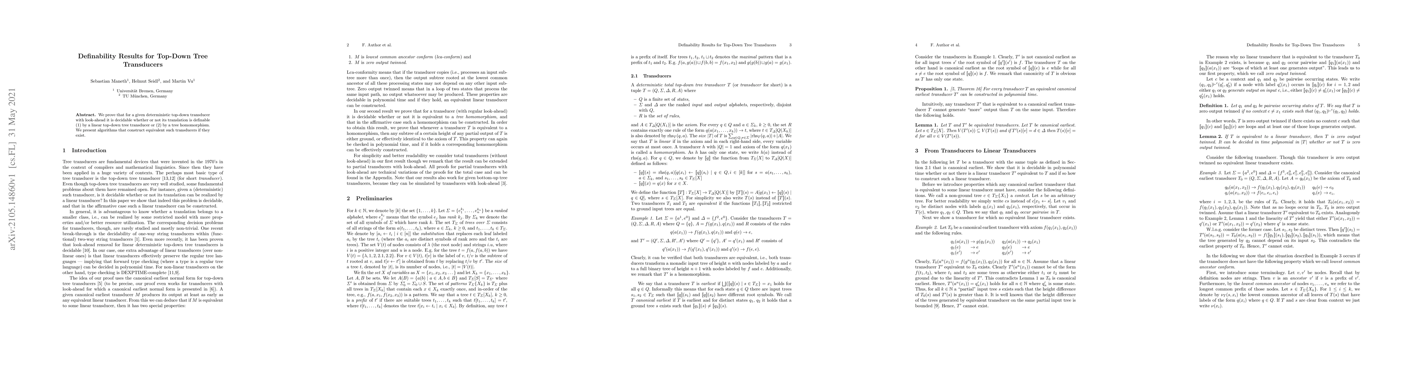 The paper establishes decidability for determining if the translation of a deterministic top-down transducer with look-ahead can be defined by a linear top-down tree transducer or a tree homomorphism, and provides algorithms to construct equivalent models if applicable.