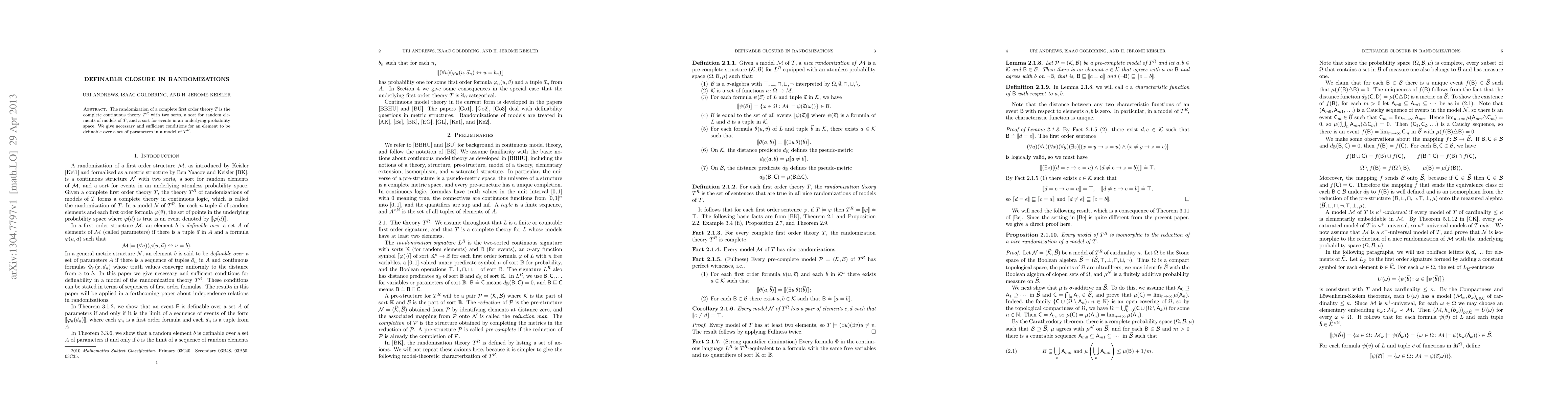The randomization of a complete first order theory T is the complete continuous theory T^R with two sorts, a sort for random elements of models of T, and a sort for events in an underlying probability space. We give necessary and sufficient conditions for an element to be definable over a set of parameters in a model of T^R.