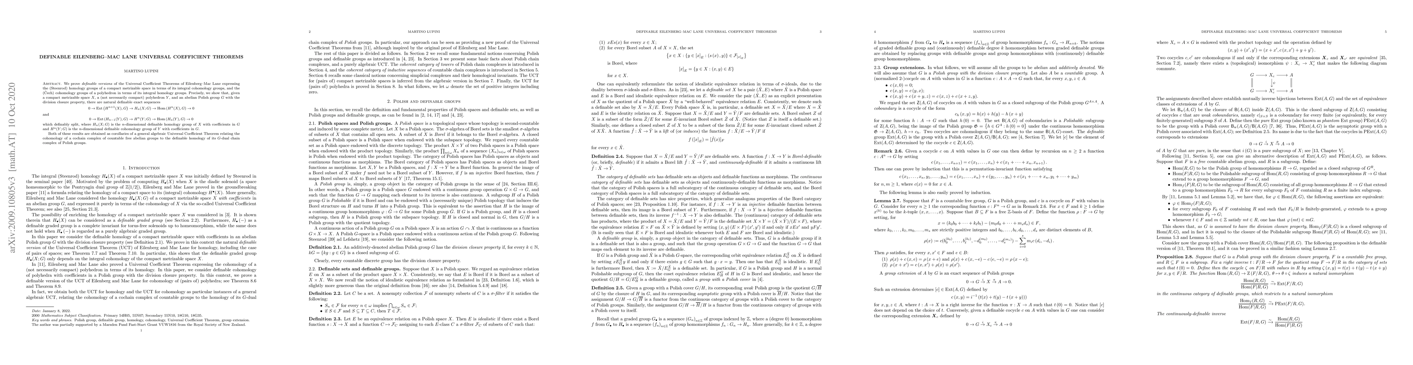 This paper proves definable versions of the Universal Coefficient Theorems for homology and cohomology, establishing exact sequences that relate definable homology and cohomology groups of spaces with coefficients in an abelian Polish group. These results are derived from a general algebraic theorem connecting the cohomology of cochain complexes with definable homology of dual chain complexes.
